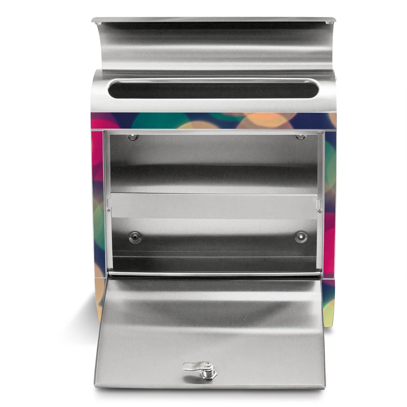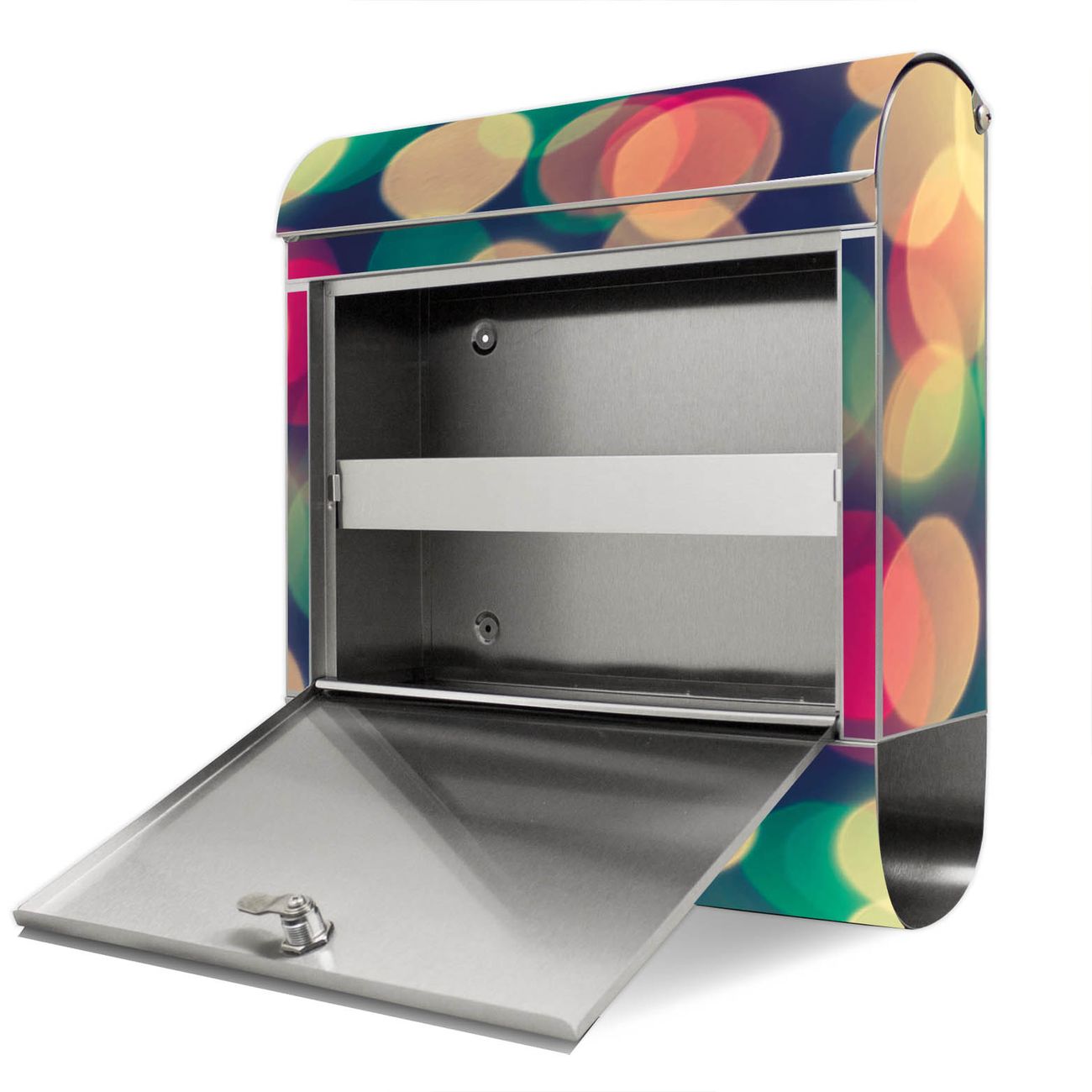 Der Motivstandbriefkasten hat ein sehr ansprechendes und ausgefallenes Design, damit entlocken Sie Ihren Nachbarn und dem Postboten ein Lächeln. Heben Sie Sich ab von der tristen grauen Masse, ohne auf Funktionalität zu verzichten. Der Briefkasten besteht aus hochwertigem 18/0 Edelstahl und die Wetter- und UV-resistenten Folie mit Lichtpunkte Weiß Grün Rot Motiv ist zusätzlich mit einem Schutzlaminat überzogen. Der Standbriefkasten wird mit Montagematerial und zwei Schlüsseln geliefert.