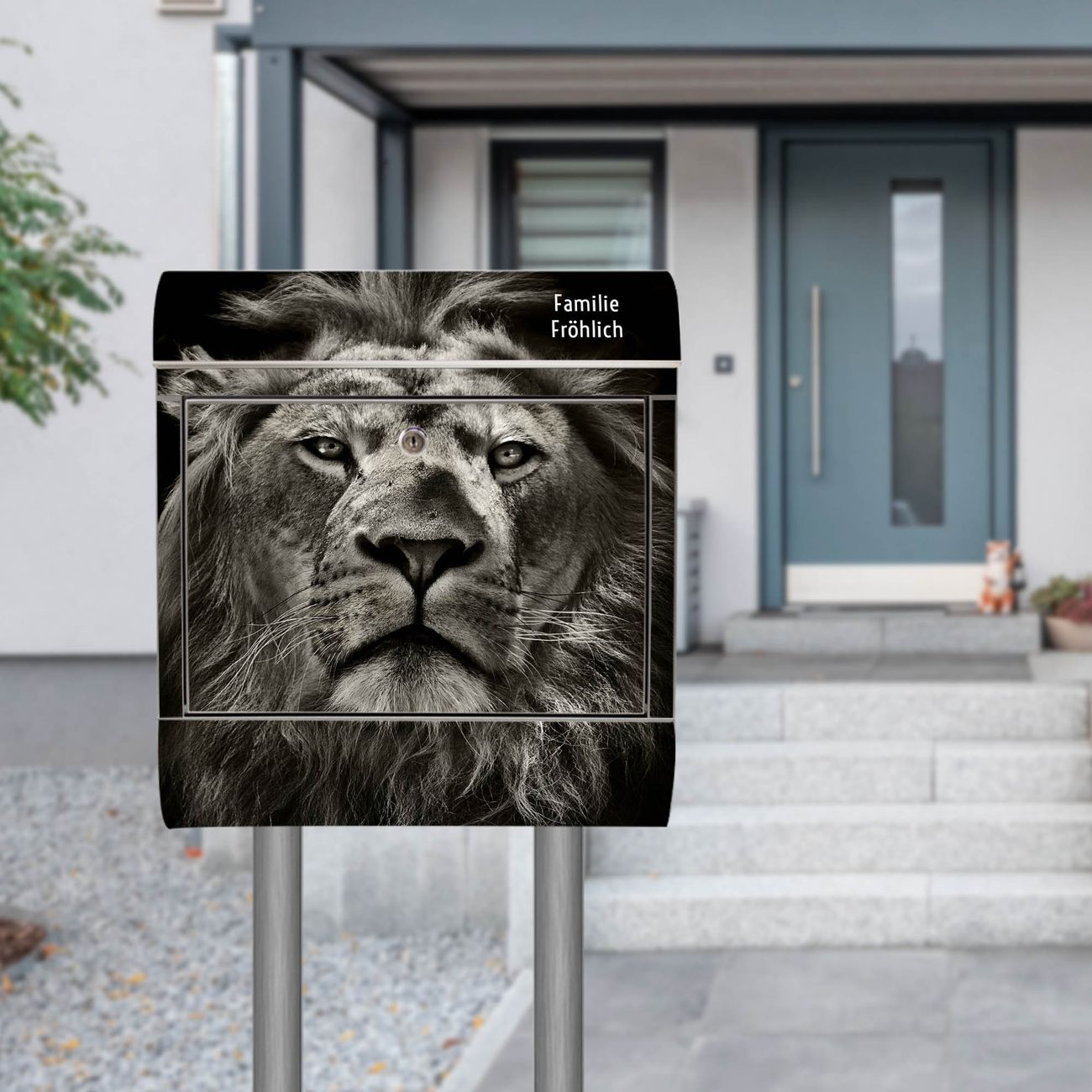 Standbriefkasten Edelstahl Löwe Porträt