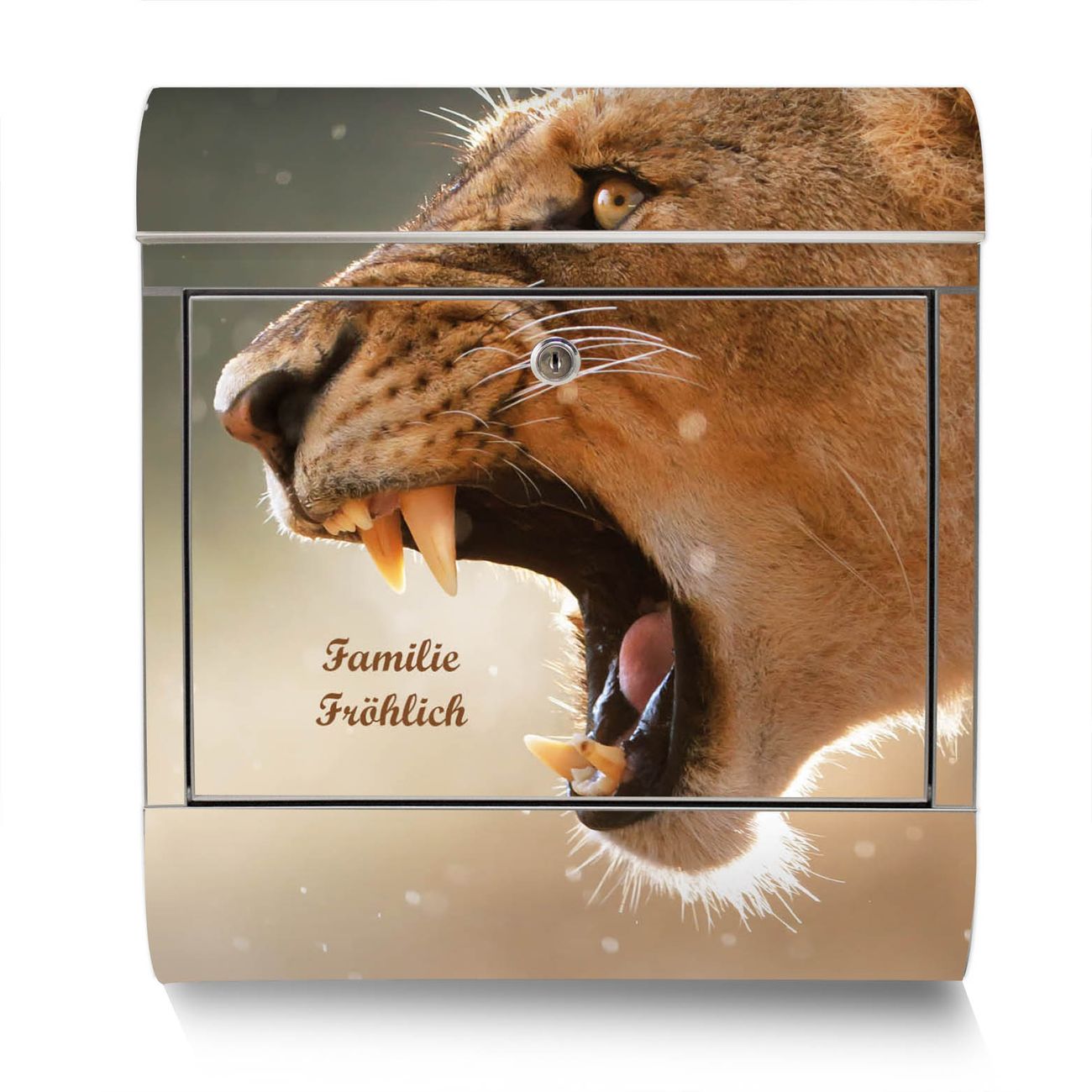Der Motivstandbriefkasten hat ein sehr ansprechendes und ausgefallenes Design, damit entlocken Sie Ihren Nachbarn und dem Postboten ein Lächeln. Heben Sie Sich ab von der tristen grauen Masse, ohne auf Funktionalität zu verzichten. Der Briefkasten besteht aus hochwertigem 18/0 Edelstahl und die Wetter- und UV-resistenten Folie mit Löwin Motiv ist zusätzlich mit einem Schutzlaminat überzogen. Der Standbriefkasten wird mit Montagematerial und zwei Schlüsseln geliefert.