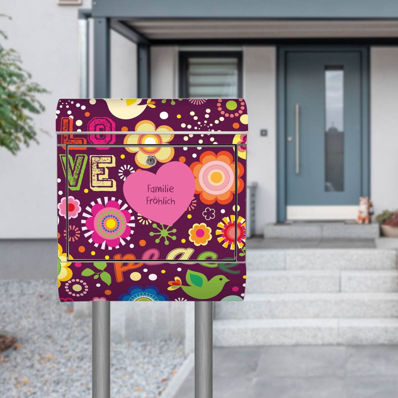 Standbriefkasten Edelstahl Love and Peace