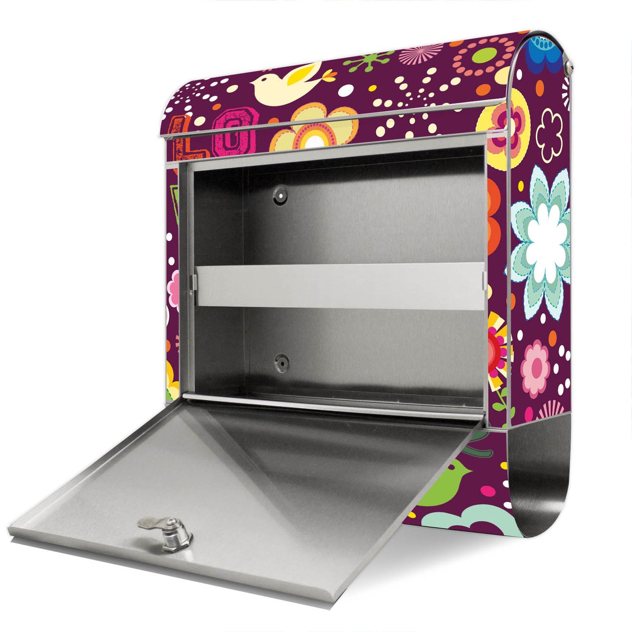 Der Motivstandbriefkasten hat ein sehr ansprechendes und ausgefallenes Design, damit entlocken Sie Ihren Nachbarn und dem Postboten ein Lächeln. Heben Sie Sich ab von der tristen grauen Masse, ohne auf Funktionalität zu verzichten. Der Briefkasten besteht aus hochwertigem 18/0 Edelstahl und die Wetter- und UV-resistenten Folie mit Love and Peace Motiv ist zusätzlich mit einem Schutzlaminat überzogen. Der Standbriefkasten wird mit Montagematerial und zwei Schlüsseln geliefert.