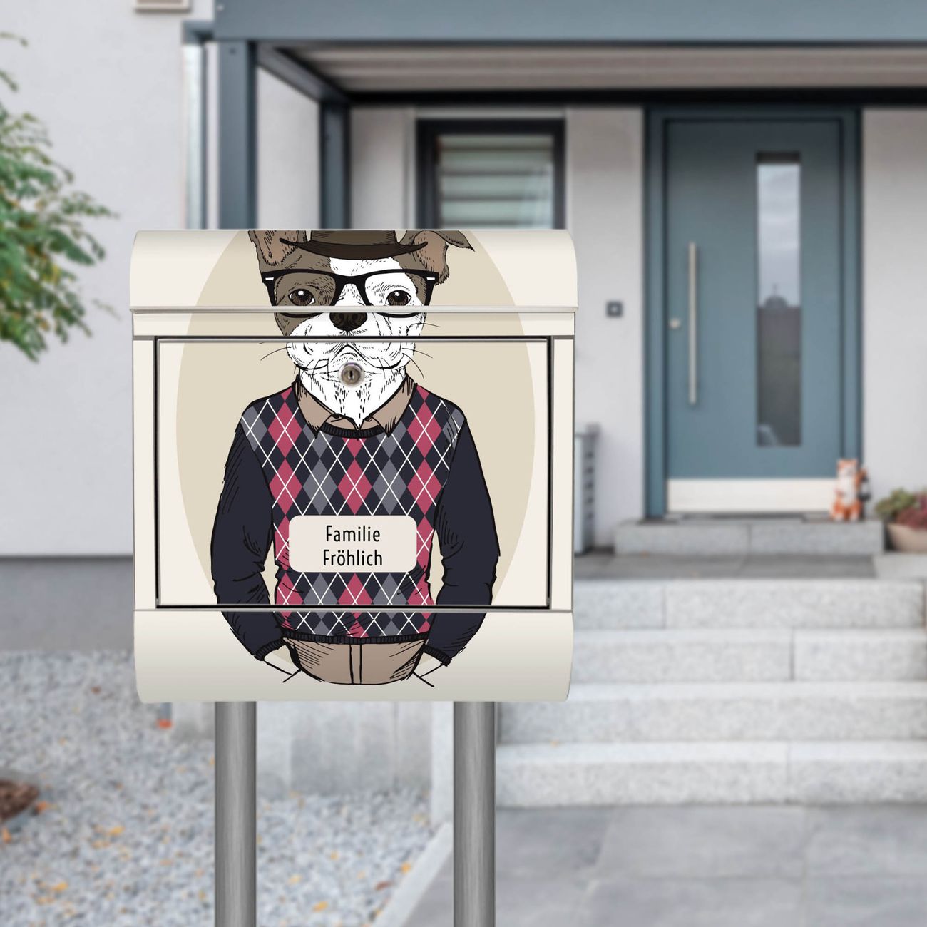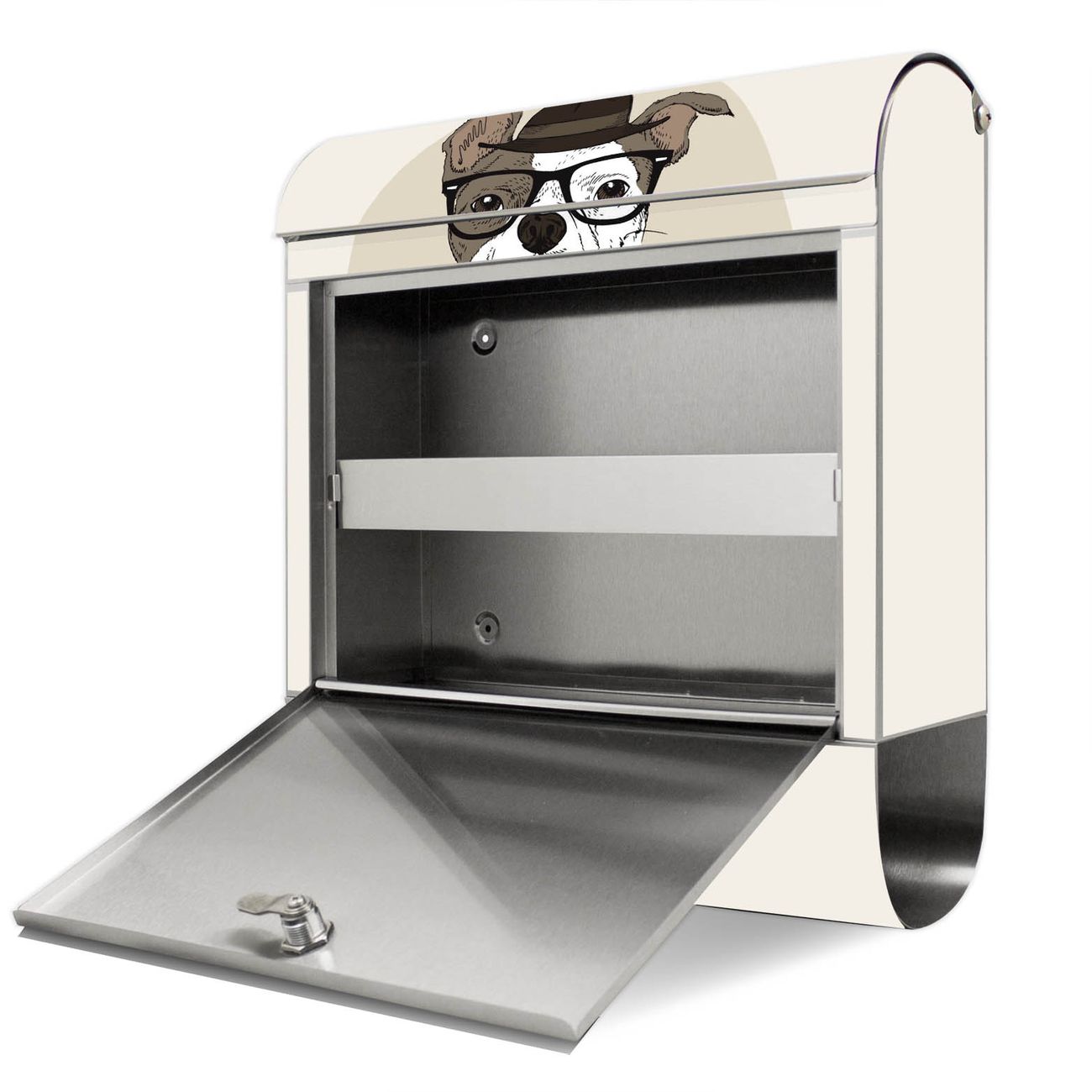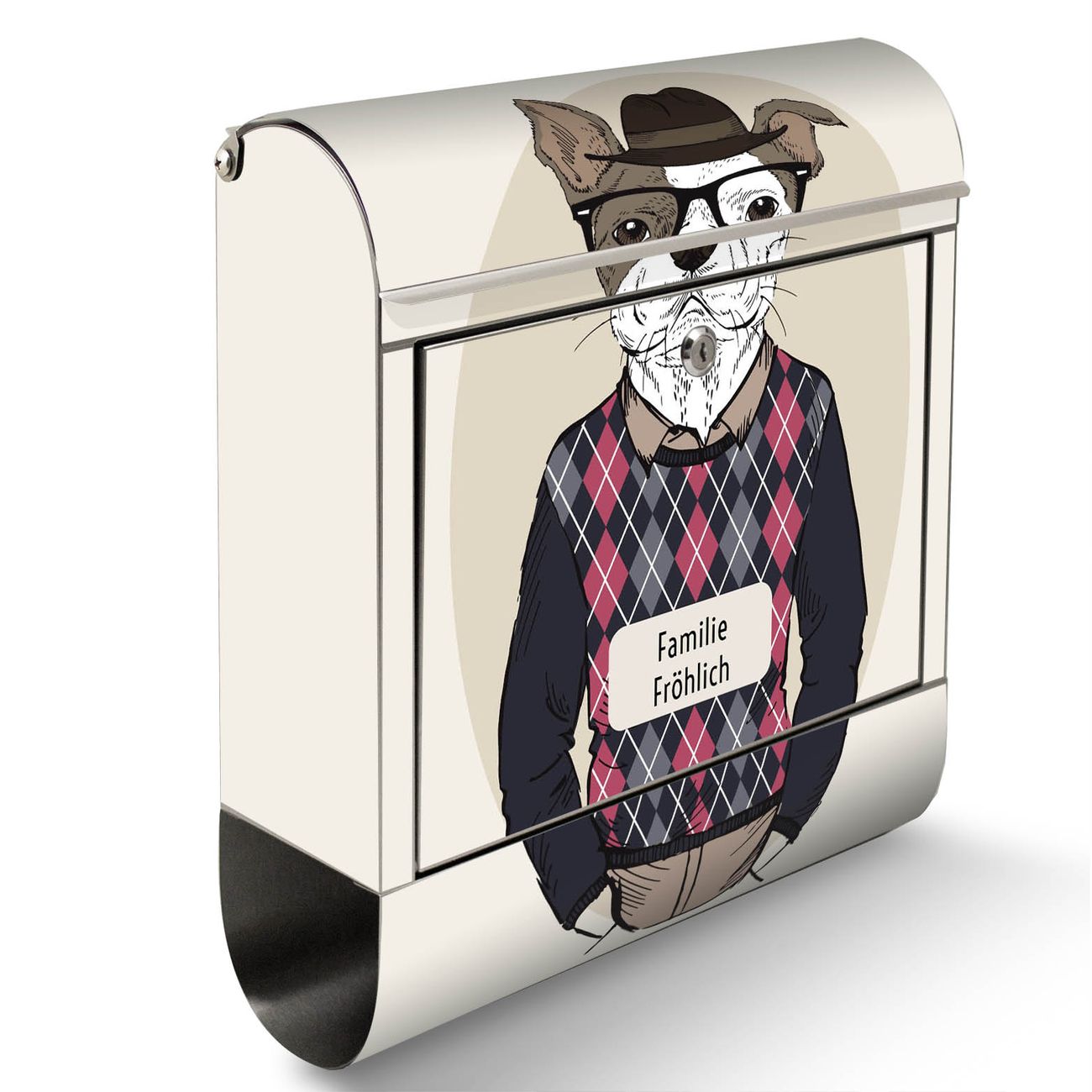 Der Motivstandbriefkasten hat ein sehr ansprechendes und ausgefallenes Design, damit entlocken Sie Ihren Nachbarn und dem Postboten ein Lächeln. Heben Sie Sich ab von der tristen grauen Masse, ohne auf Funktionalität zu verzichten. Der Briefkasten besteht aus hochwertigem 18/0 Edelstahl und die Wetter- und UV-resistenten Folie mit Ludger Motiv ist zusätzlich mit einem Schutzlaminat überzogen. Der Standbriefkasten wird mit Montagematerial und zwei Schlüsseln geliefert.