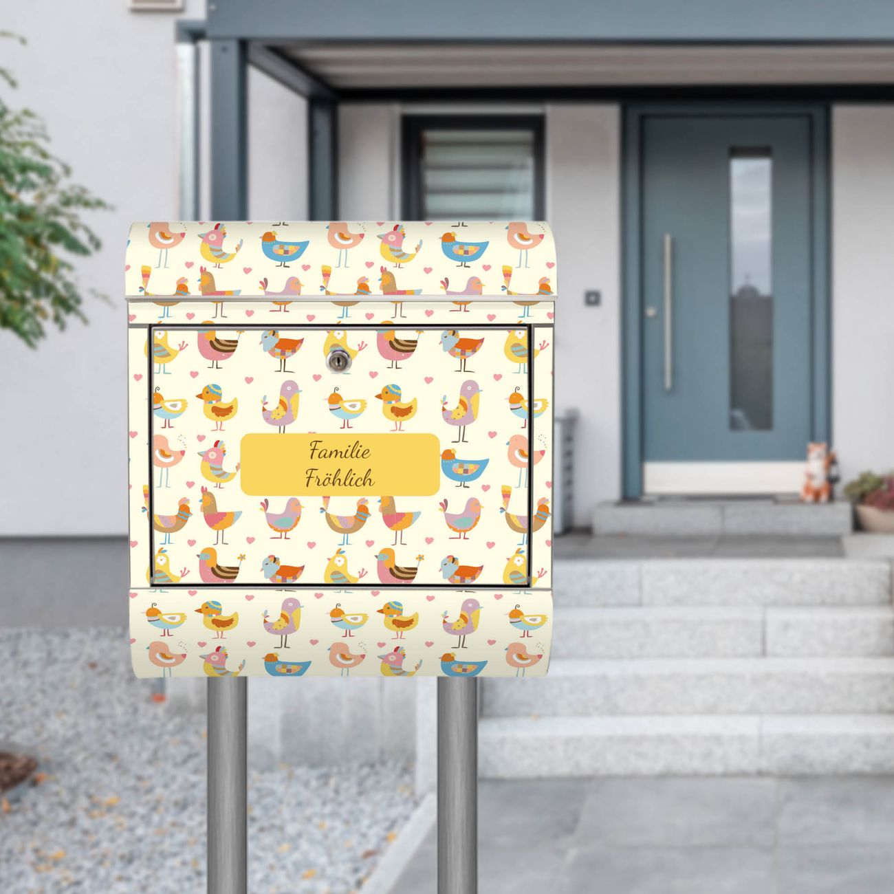 Standbriefkasten Edelstahl Lustige Vögel