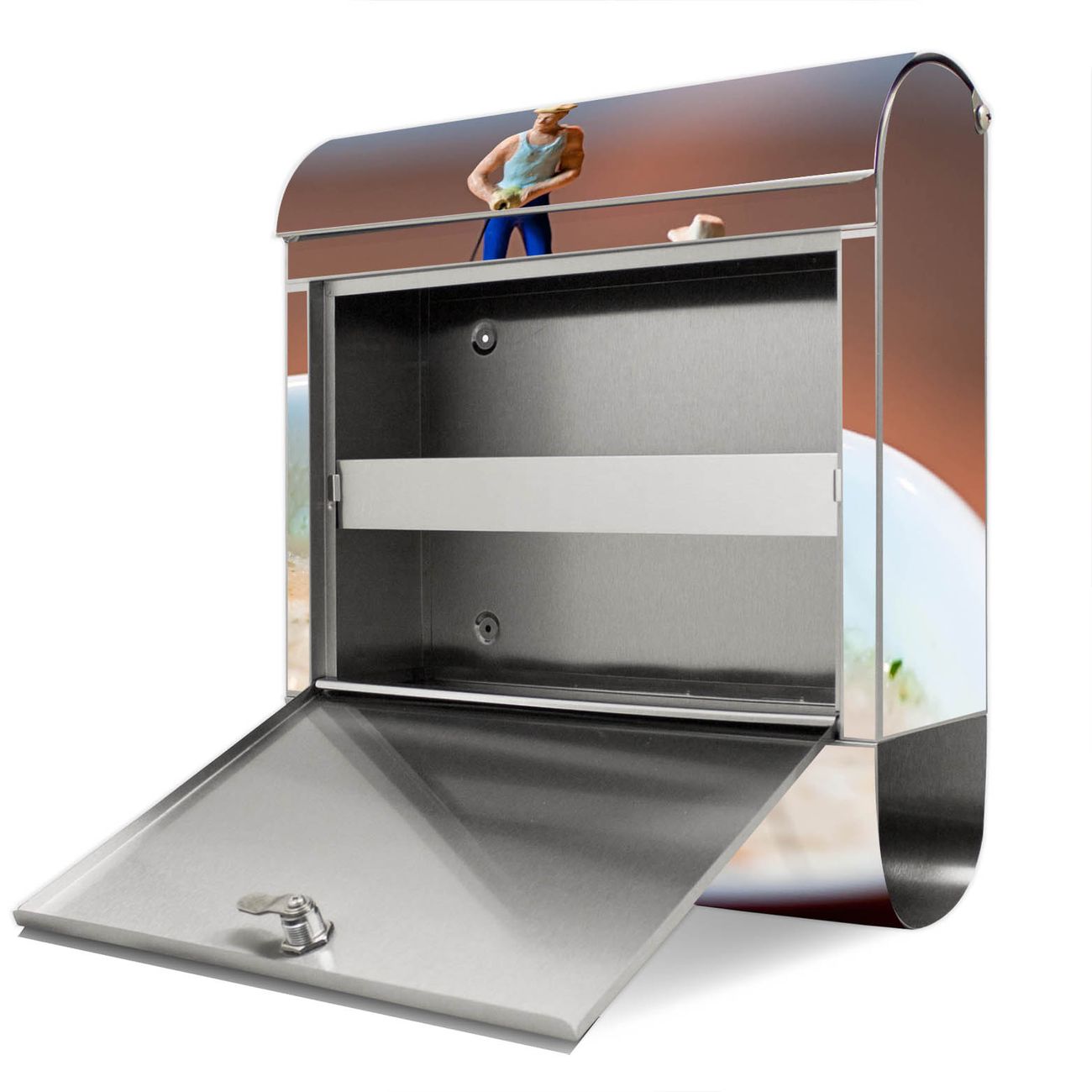 Wir empfehlen Ihnen, den Standbriefkasten einzubetonieren, um einen optimalen Stand zu gewährleisten. Die Größe des Standbriefkastens bietet genügend Platz für Sendungen aller Art, das hochwertige Edelstahl ist rostfrei und die Motivfolie absolut wetterfest.