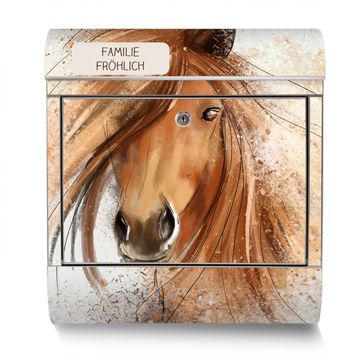 Der banjado Edelstahl Standbriefkasten mit Motiv Magic Horse und eigenem Wunschtext bietet Ihnen mit seinem Fassungsvermögen genügend Platz auch für große A4 Sendungen. Das integrierte Zeitungsfach eignet sich hervorragend, um unkompliziert die Tageszeitung zu fassen.