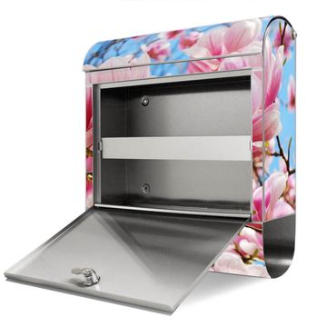 Der Motivstandbriefkasten hat ein sehr ansprechendes und ausgefallenes Design, damit entlocken Sie Ihren Nachbarn und dem Postboten ein Lächeln. Heben Sie Sich ab von der tristen grauen Masse, ohne auf Funktionalität zu verzichten. Der Briefkasten besteht aus hochwertigem 18/0 Edelstahl und die Wetter- und UV-resistenten Folie mit Magnolienbaum Motiv ist zusätzlich mit einem Schutzlaminat überzogen. Der Standbriefkasten wird mit Montagematerial und zwei Schlüsseln geliefert.