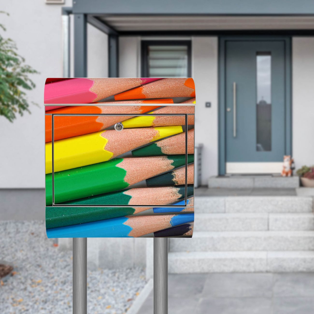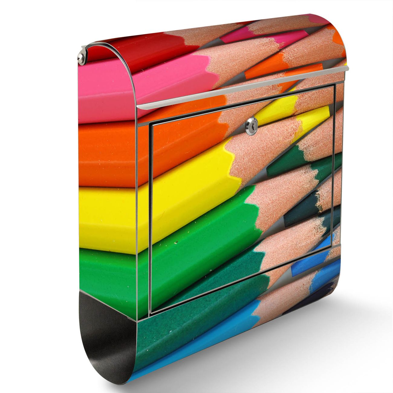 Der Motivstandbriefkasten hat ein sehr ansprechendes und ausgefallenes Design, damit entlocken Sie Ihren Nachbarn und dem Postboten ein Lächeln. Heben Sie Sich ab von der tristen grauen Masse, ohne auf Funktionalität zu verzichten. Der Briefkasten besteht aus hochwertigem 18/0 Edelstahl und die Wetter- und UV-resistenten Folie mit Malstifte Motiv ist zusätzlich mit einem Schutzlaminat überzogen. Der Standbriefkasten wird mit Montagematerial und zwei Schlüsseln geliefert.