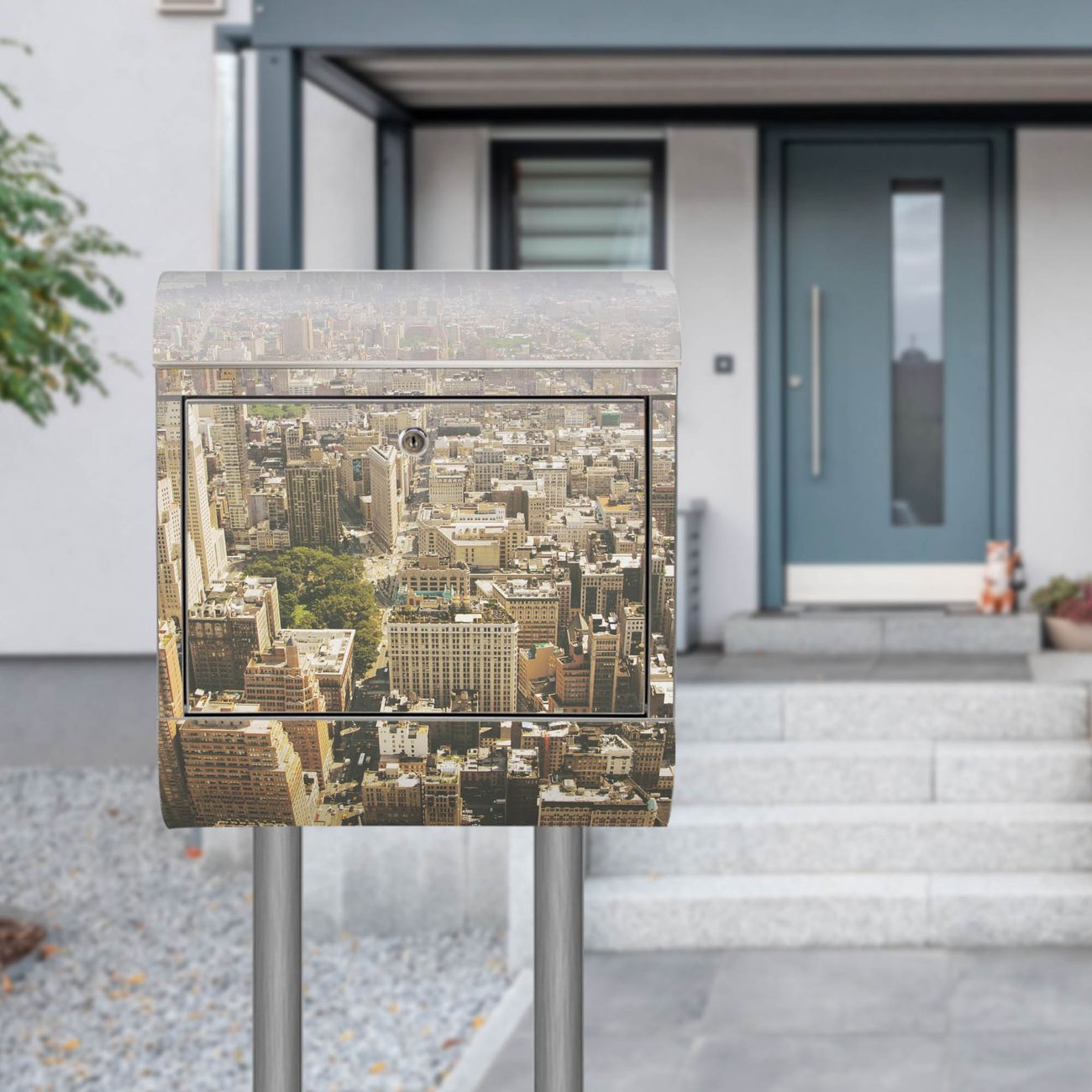Der Motivstandbriefkasten hat ein sehr ansprechendes und ausgefallenes Design, damit entlocken Sie Ihren Nachbarn und dem Postboten ein Lächeln. Heben Sie Sich ab von der tristen grauen Masse, ohne auf Funktionalität zu verzichten. Der Briefkasten besteht aus hochwertigem 18/0 Edelstahl und die Wetter- und UV-resistenten Folie mit Manhattan 1 Motiv ist zusätzlich mit einem Schutzlaminat überzogen. Der Standbriefkasten wird mit Montagematerial und zwei Schlüsseln geliefert.