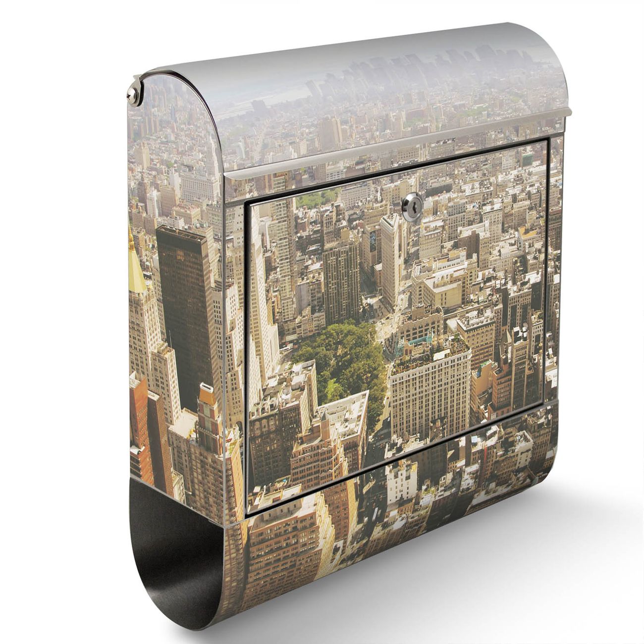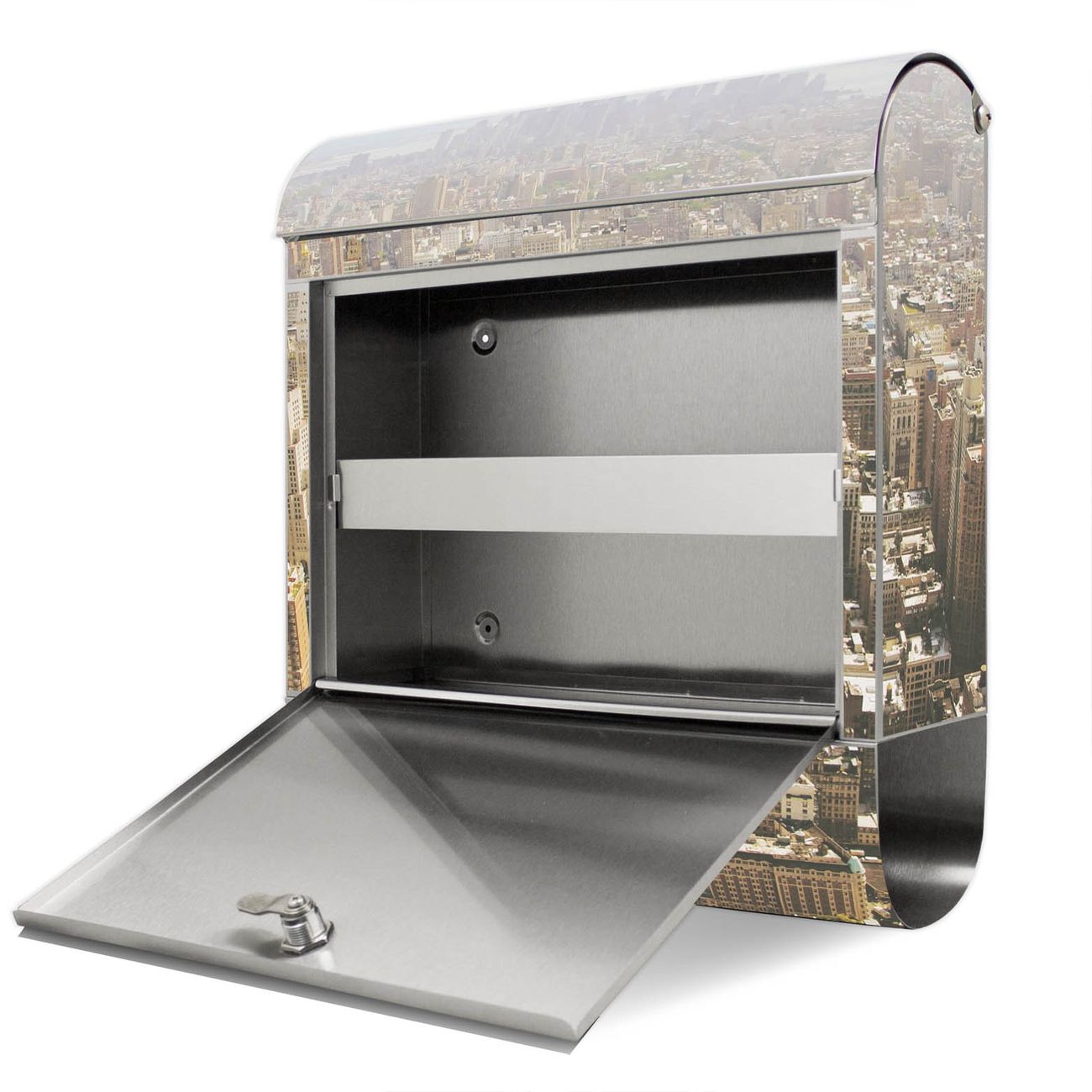 Der banjado Edelstahl Standbriefkasten mit Motiv Manhattan 1 bietet Ihnen mit seinem Fassungsvermögen genügend Platz auch für große A4 Sendungen. Das integrierte Zeitungsfach eignet sich hervorragend, um unkompliziert die Tageszeitung zu fassen.