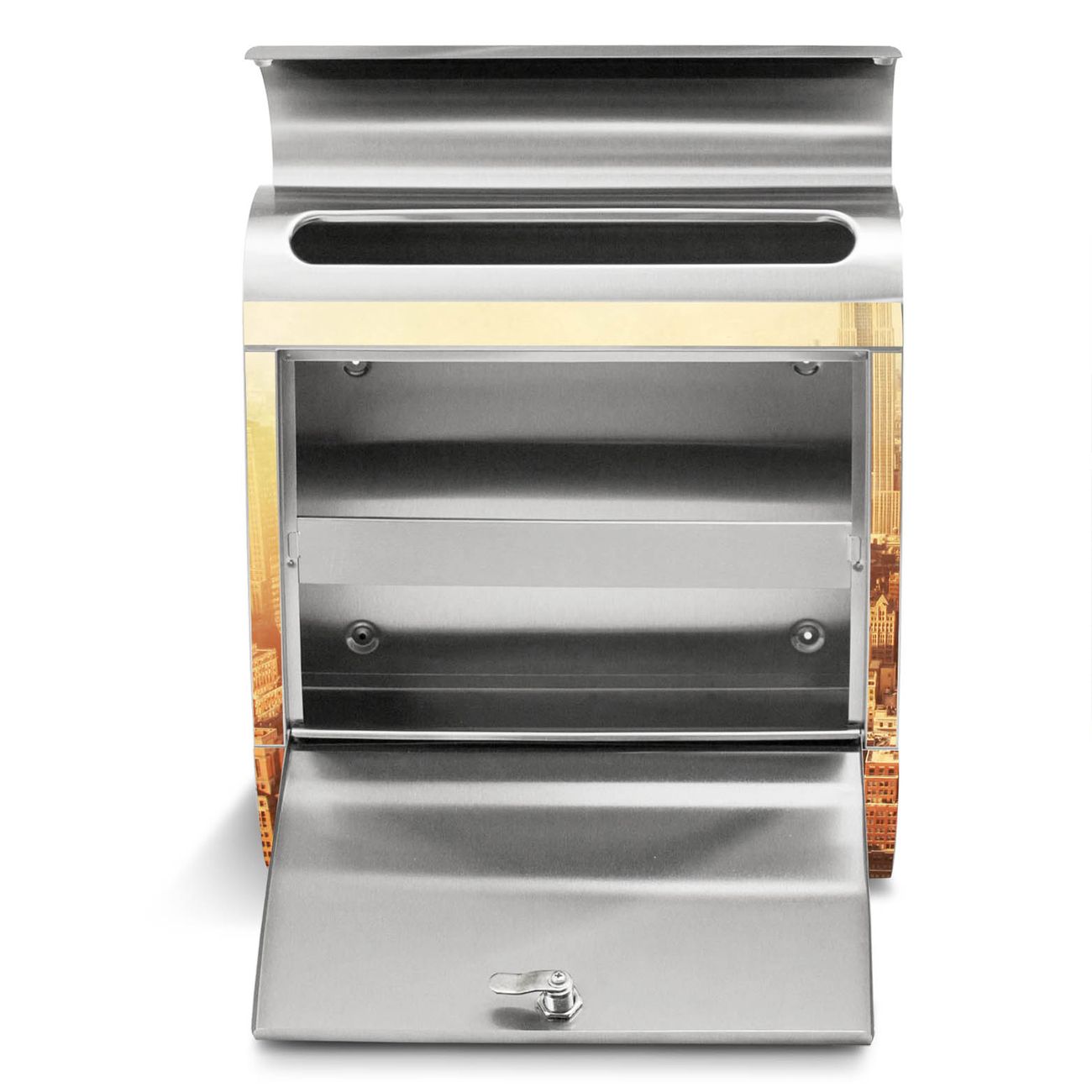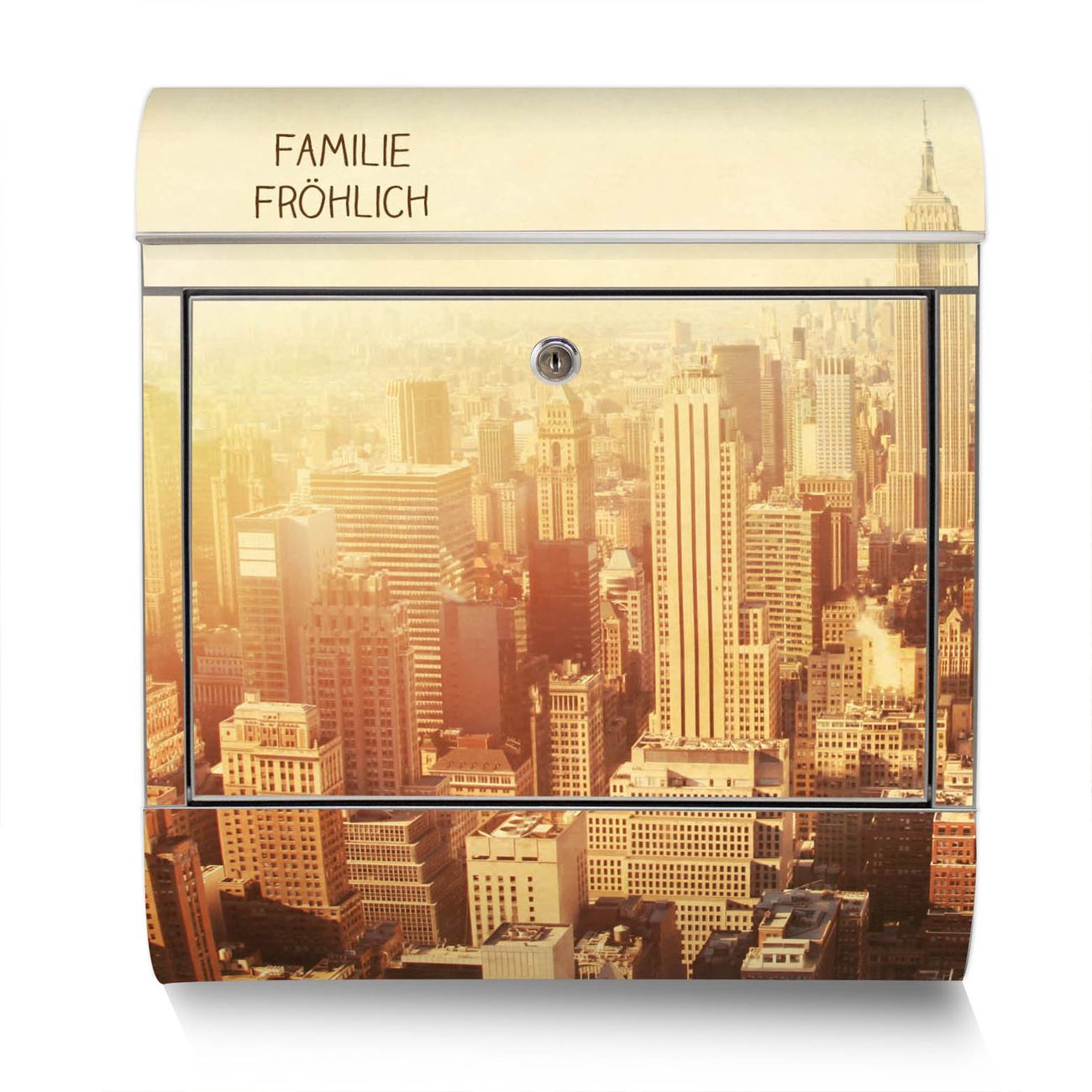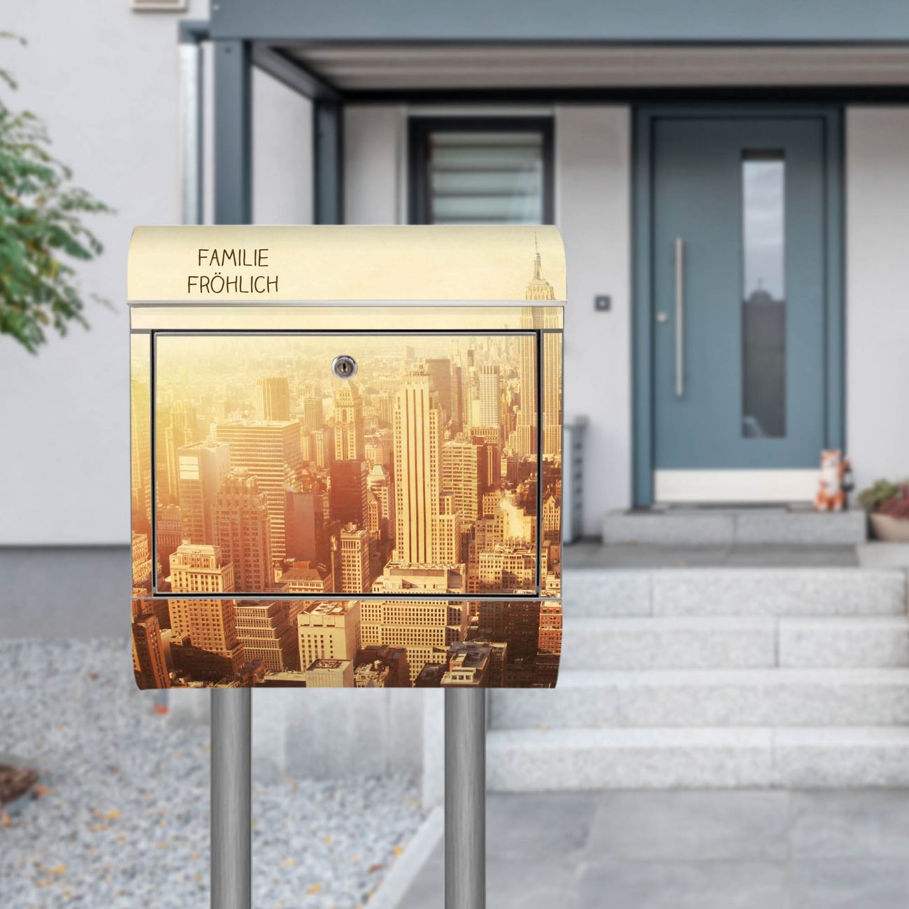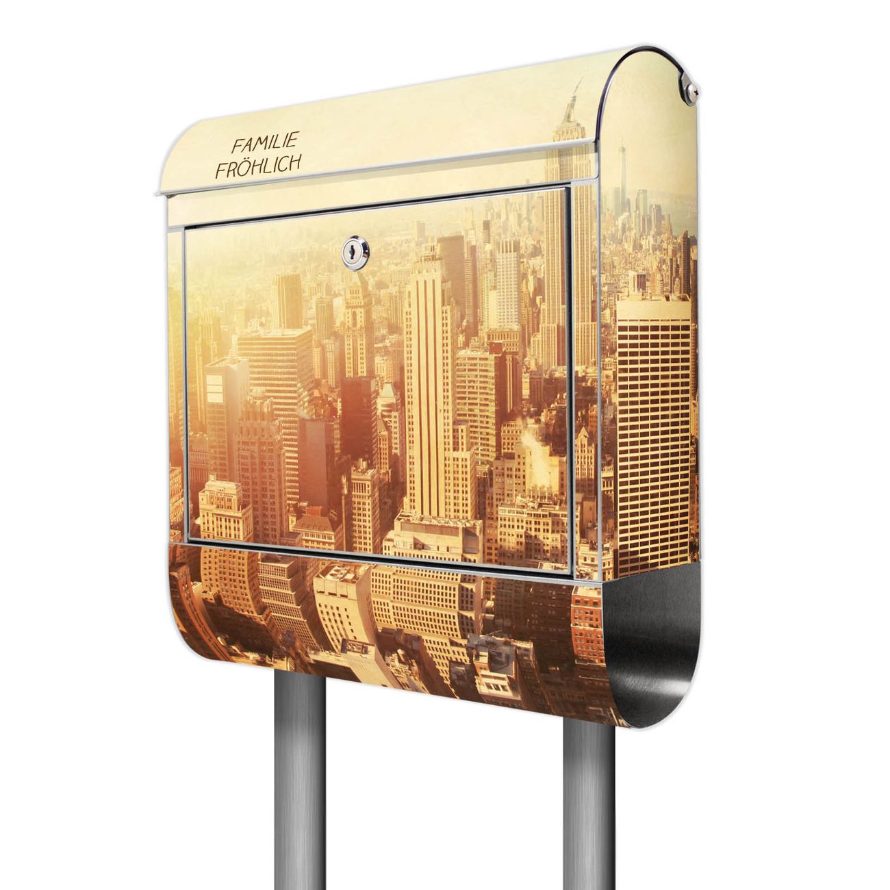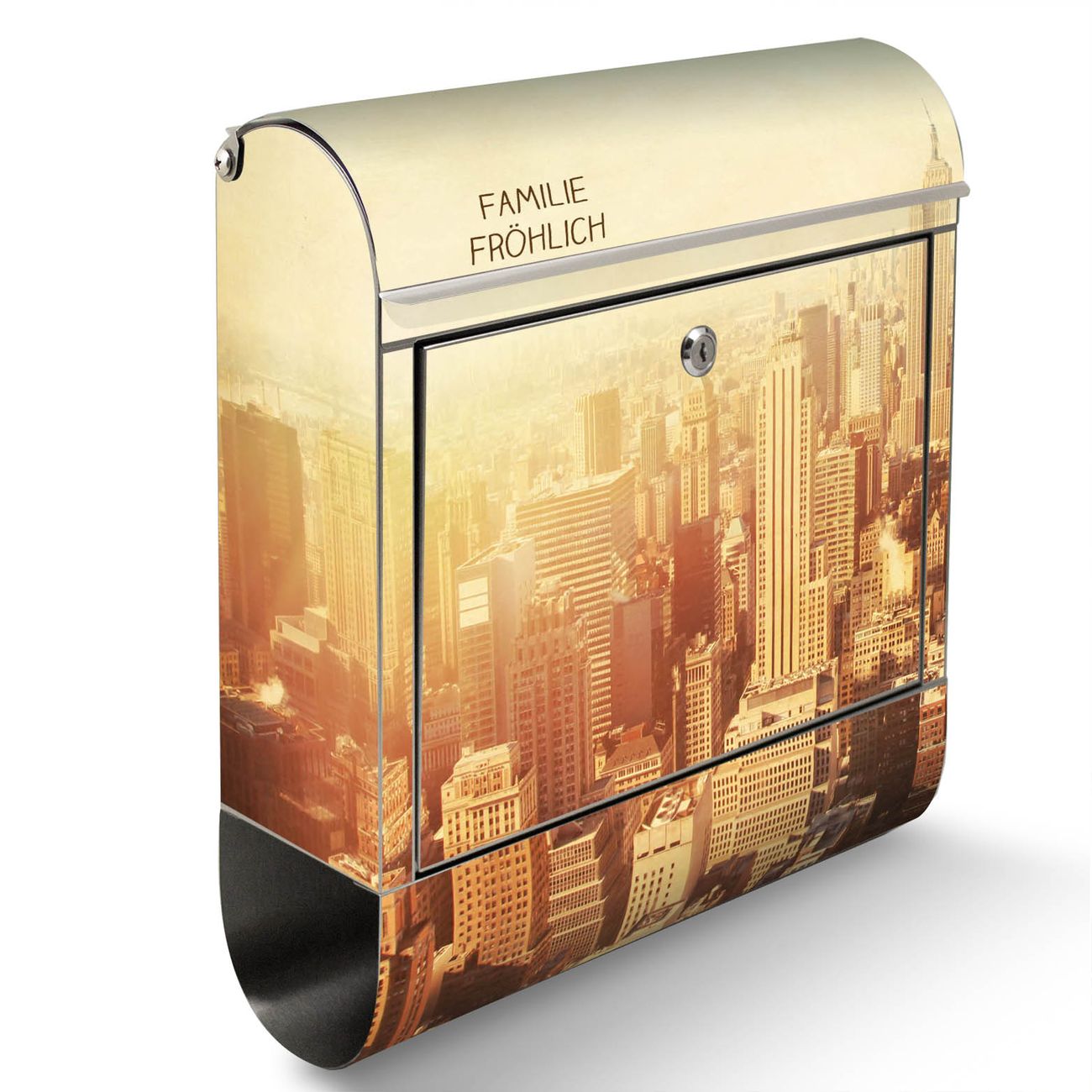 Der Motivstandbriefkasten hat ein sehr ansprechendes und ausgefallenes Design, damit entlocken Sie Ihren Nachbarn und dem Postboten ein Lächeln. Heben Sie Sich ab von der tristen grauen Masse, ohne auf Funktionalität zu verzichten. Der Briefkasten besteht aus hochwertigem 18/0 Edelstahl und die Wetter- und UV-resistenten Folie mit Manhattan 2 Motiv ist zusätzlich mit einem Schutzlaminat überzogen. Der Standbriefkasten wird mit Montagematerial und zwei Schlüsseln geliefert.