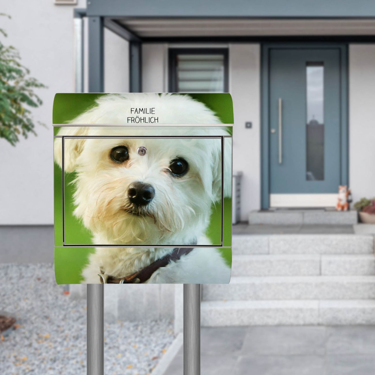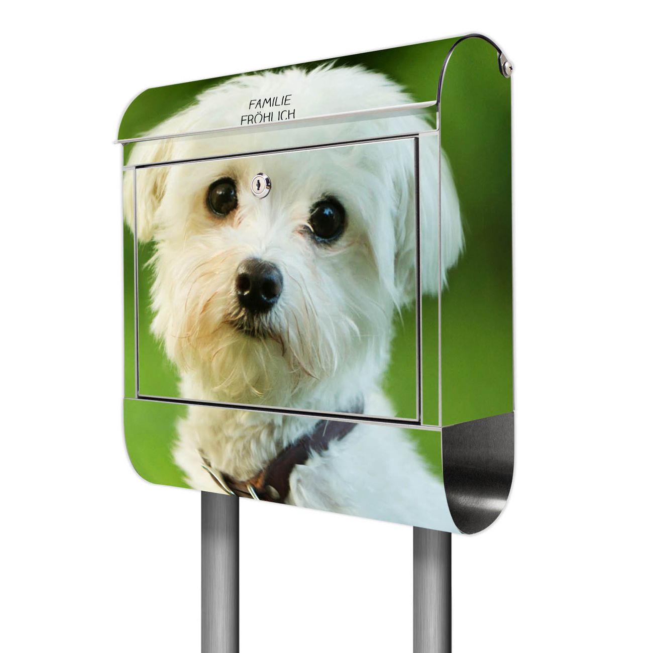 Der Motivstandbriefkasten hat ein sehr ansprechendes und ausgefallenes Design, damit entlocken Sie Ihren Nachbarn und dem Postboten ein Lächeln. Heben Sie Sich ab von der tristen grauen Masse, ohne auf Funktionalität zu verzichten. Der Briefkasten besteht aus hochwertigem 18/0 Edelstahl und die Wetter- und UV-resistenten Folie mit Mareike Motiv ist zusätzlich mit einem Schutzlaminat überzogen. Der Standbriefkasten wird mit Montagematerial und zwei Schlüsseln geliefert.