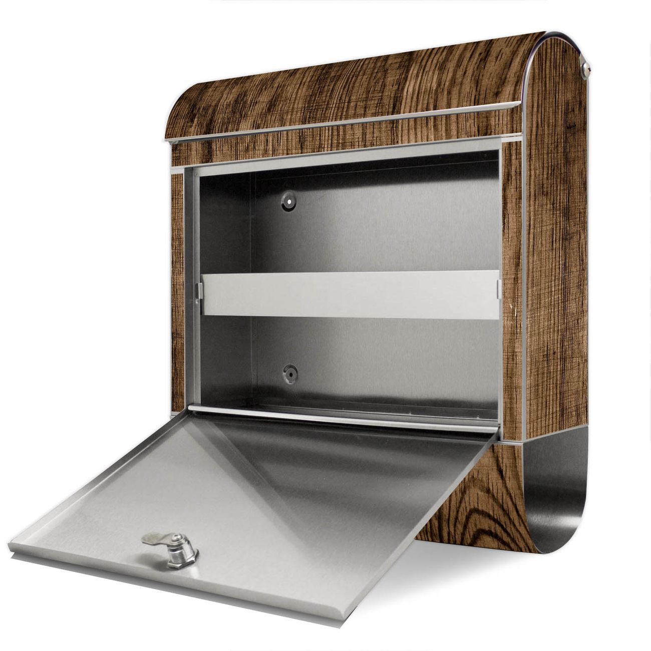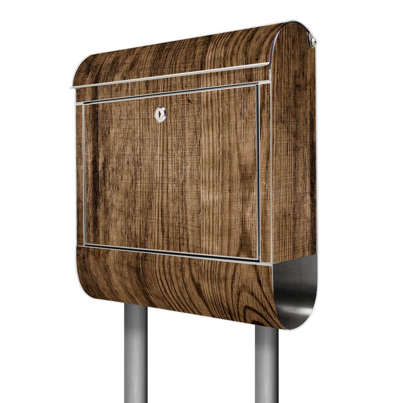 Der Motivstandbriefkasten hat ein sehr ansprechendes und ausgefallenes Design, damit entlocken Sie Ihren Nachbarn und dem Postboten ein Lächeln. Heben Sie Sich ab von der tristen grauen Masse, ohne auf Funktionalität zu verzichten. Der Briefkasten besteht aus hochwertigem 18/0 Edelstahl und die Wetter- und UV-resistenten Folie mit Maserung Dunkel Motiv ist zusätzlich mit einem Schutzlaminat überzogen. Der Standbriefkasten wird mit Montagematerial und zwei Schlüsseln geliefert.