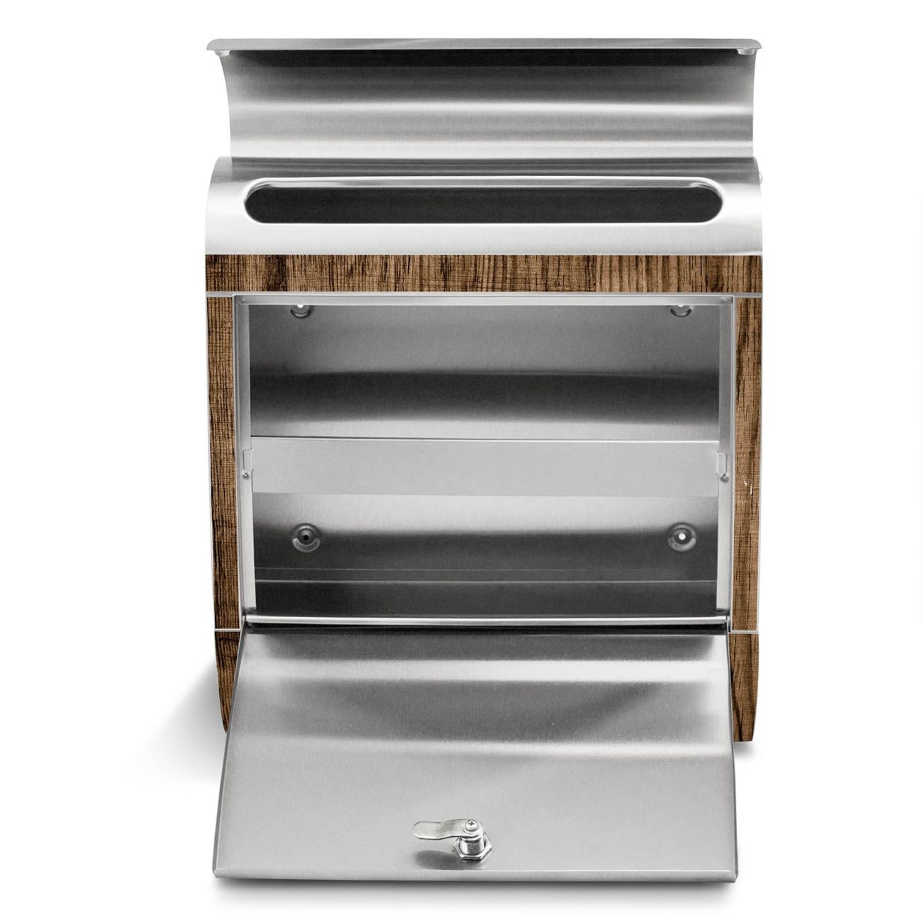 Der banjado Edelstahl Standbriefkasten mit Motiv Maserung Dunkel bietet Ihnen mit seinem Fassungsvermögen genügend Platz auch für große A4 Sendungen. Das integrierte Zeitungsfach eignet sich hervorragend, um unkompliziert die Tageszeitung zu fassen.