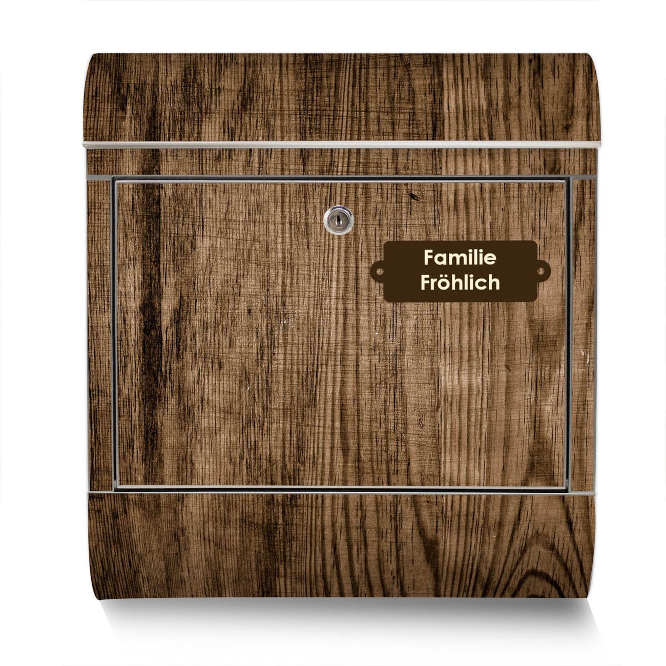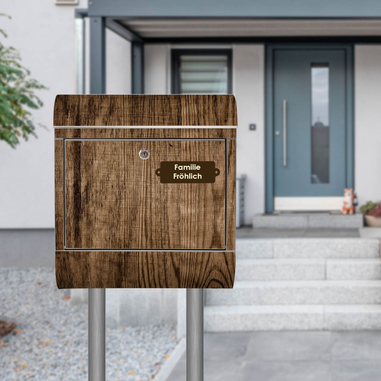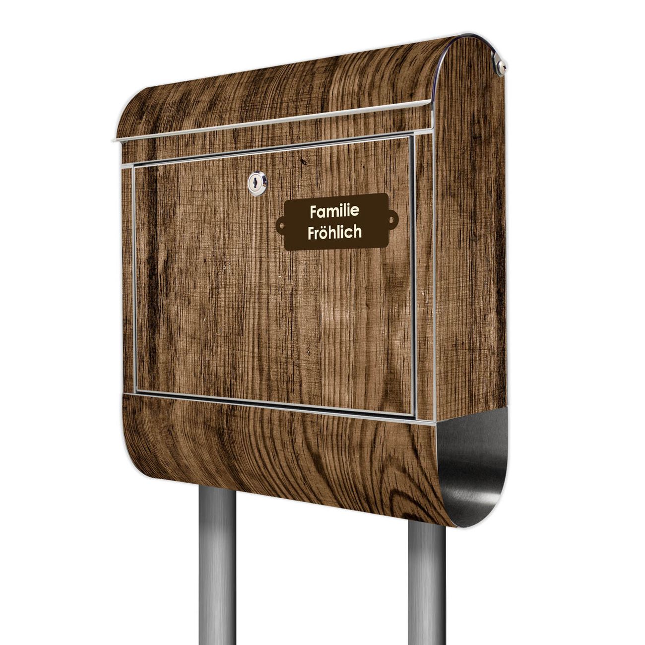 Der banjado Edelstahl Standbriefkasten mit Motiv Maserung Dunkel und eigenem Wunschtext bietet Ihnen mit seinem Fassungsvermögen genügend Platz auch für große A4 Sendungen. Das integrierte Zeitungsfach eignet sich hervorragend, um unkompliziert die Tageszeitung zu fassen.