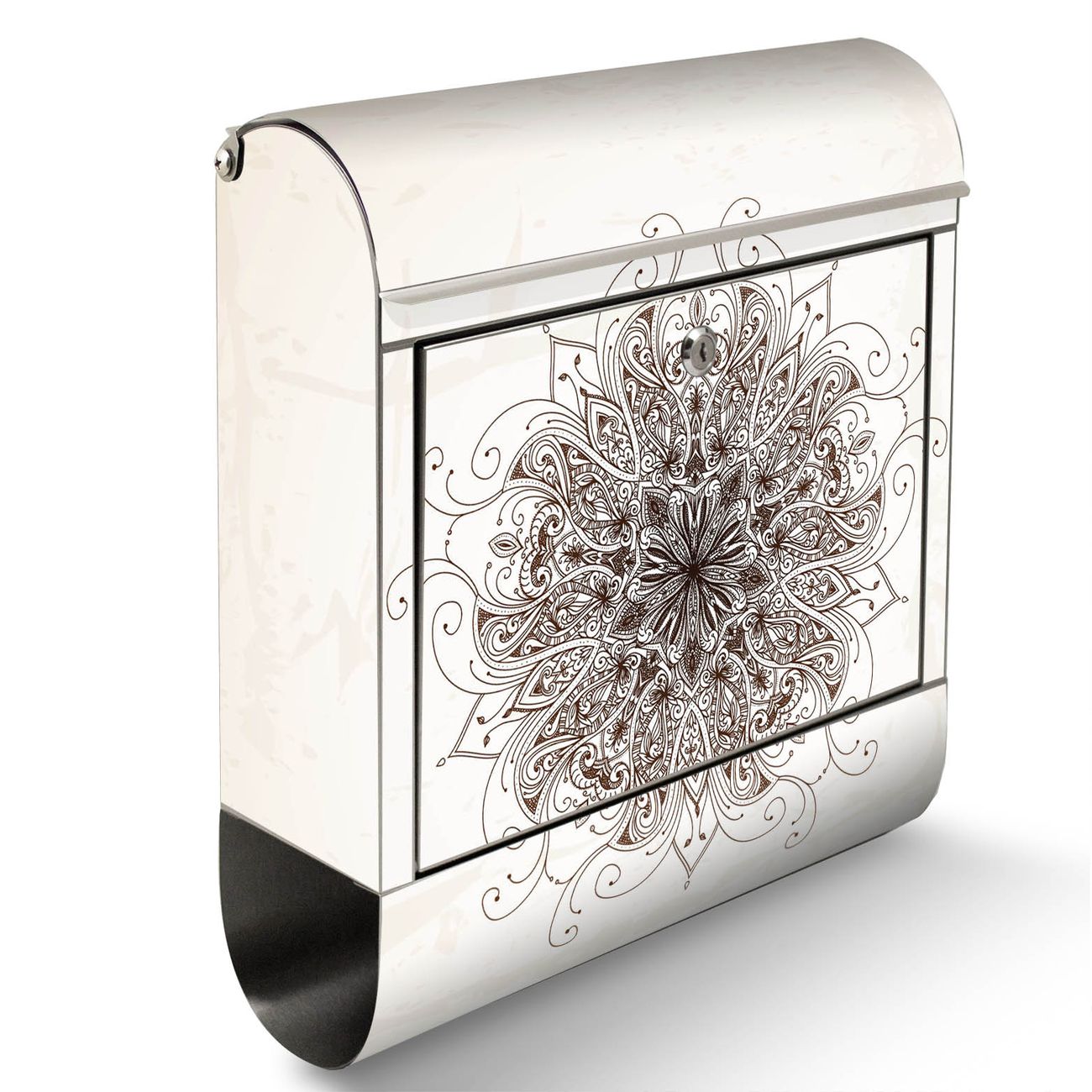 Der banjado Edelstahl Standbriefkasten mit Motiv Mehendi bietet Ihnen mit seinem Fassungsvermögen genügend Platz auch für große A4 Sendungen. Das integrierte Zeitungsfach eignet sich hervorragend, um unkompliziert die Tageszeitung zu fassen.