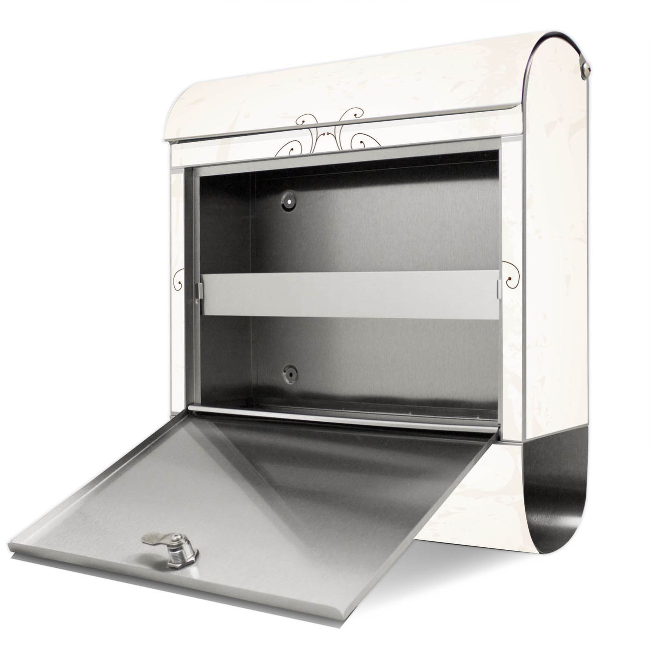 Der Motivstandbriefkasten hat ein sehr ansprechendes und ausgefallenes Design, damit entlocken Sie Ihren Nachbarn und dem Postboten ein Lächeln. Heben Sie Sich ab von der tristen grauen Masse, ohne auf Funktionalität zu verzichten. Der Briefkasten besteht aus hochwertigem 18/0 Edelstahl und die Wetter- und UV-resistenten Folie mit Mehendi Motiv ist zusätzlich mit einem Schutzlaminat überzogen. Der Standbriefkasten wird mit Montagematerial und zwei Schlüsseln geliefert.