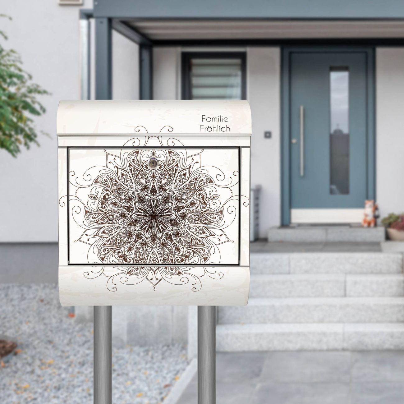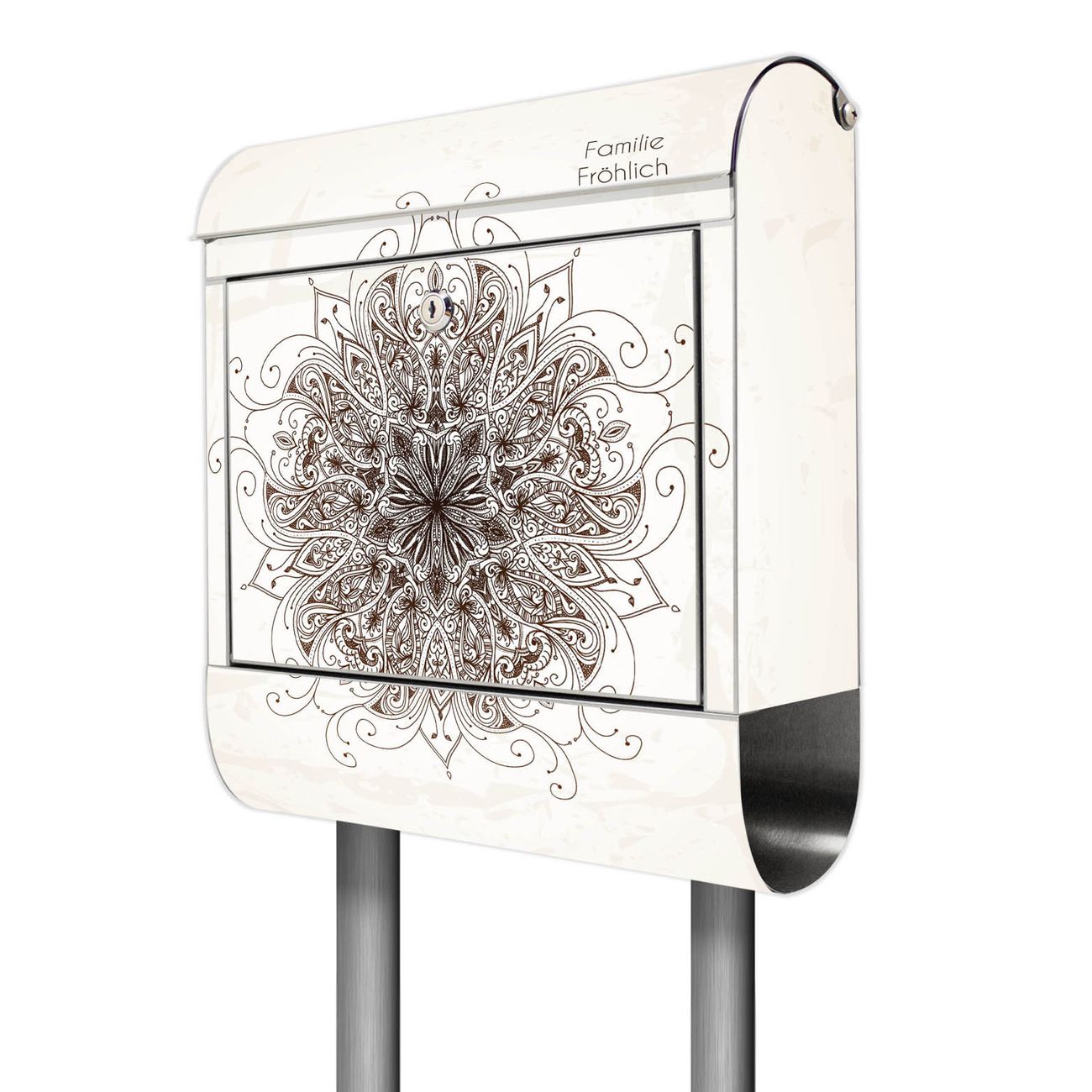 Der Motivstandbriefkasten hat ein sehr ansprechendes und ausgefallenes Design, damit entlocken Sie Ihren Nachbarn und dem Postboten ein Lächeln. Heben Sie Sich ab von der tristen grauen Masse, ohne auf Funktionalität zu verzichten. Der Briefkasten besteht aus hochwertigem 18/0 Edelstahl und die Wetter- und UV-resistenten Folie mit Mehendi Motiv ist zusätzlich mit einem Schutzlaminat überzogen. Der Standbriefkasten wird mit Montagematerial und zwei Schlüsseln geliefert.