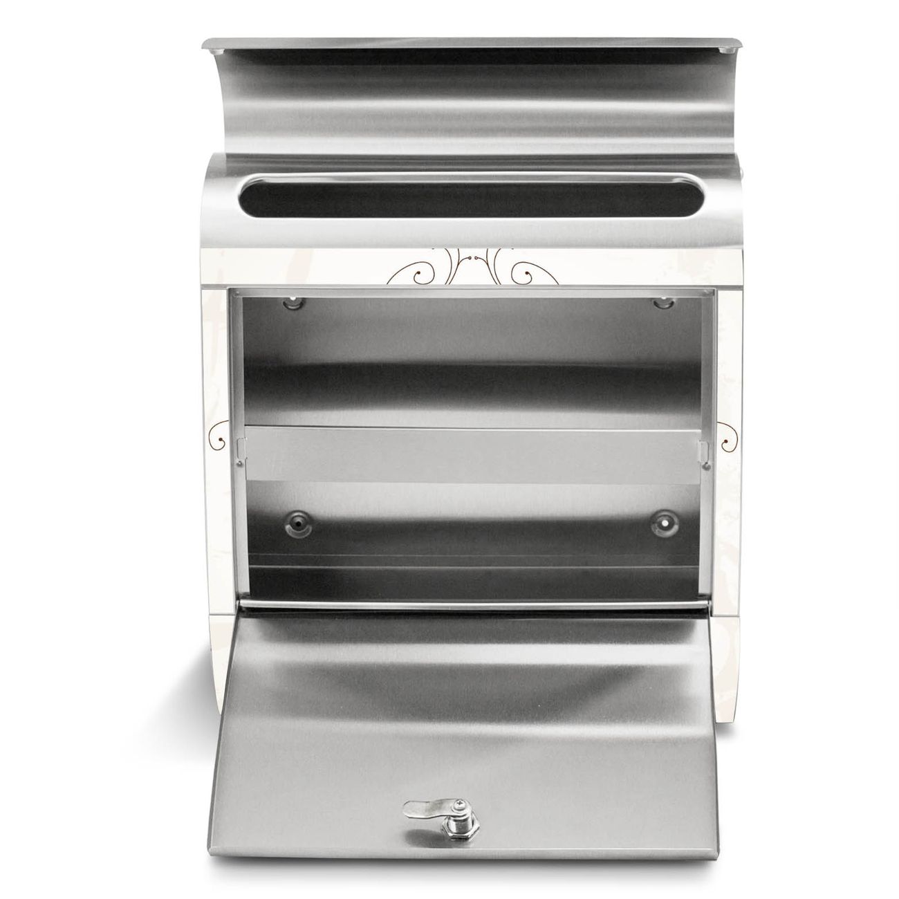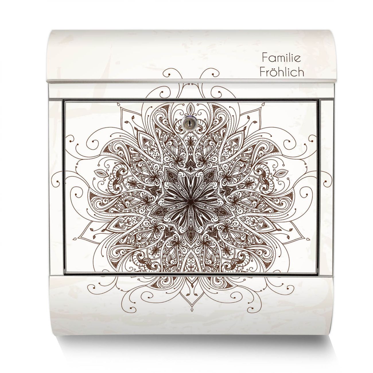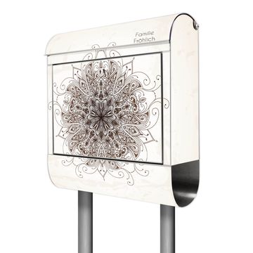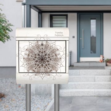 Der banjado Edelstahl Standbriefkasten mit Motiv Mehendi und eigenem Wunschtext bietet Ihnen mit seinem Fassungsvermögen genügend Platz auch für große A4 Sendungen. Das integrierte Zeitungsfach eignet sich hervorragend, um unkompliziert die Tageszeitung zu fassen.