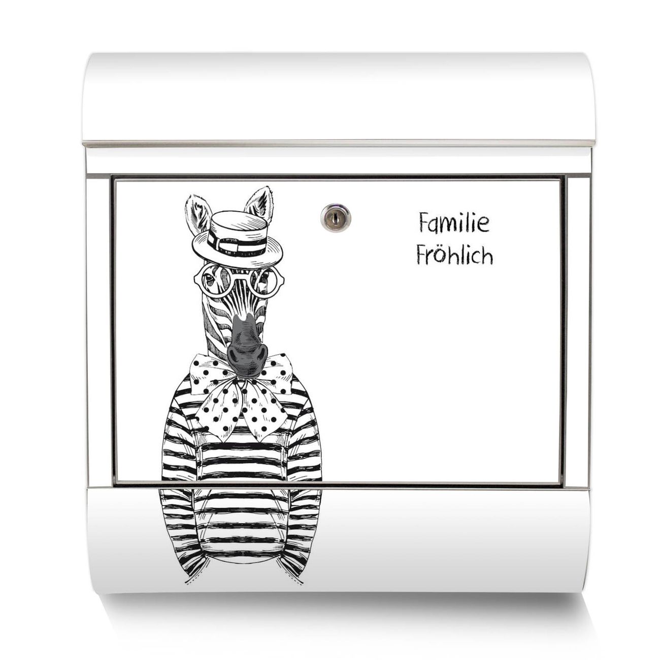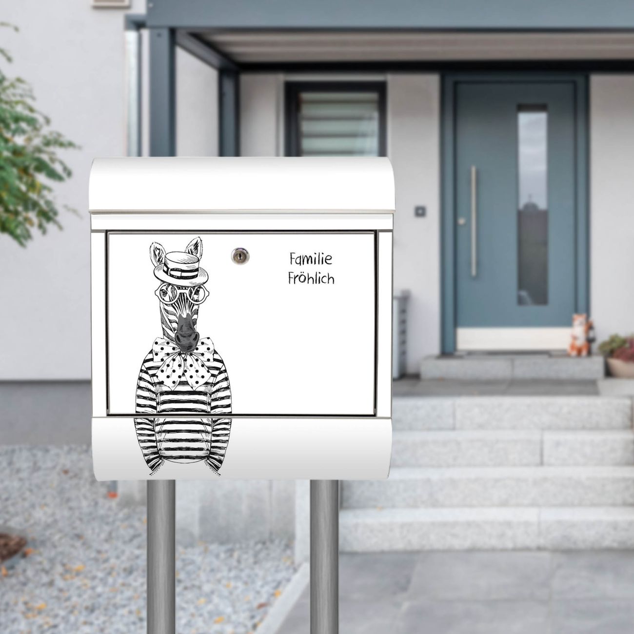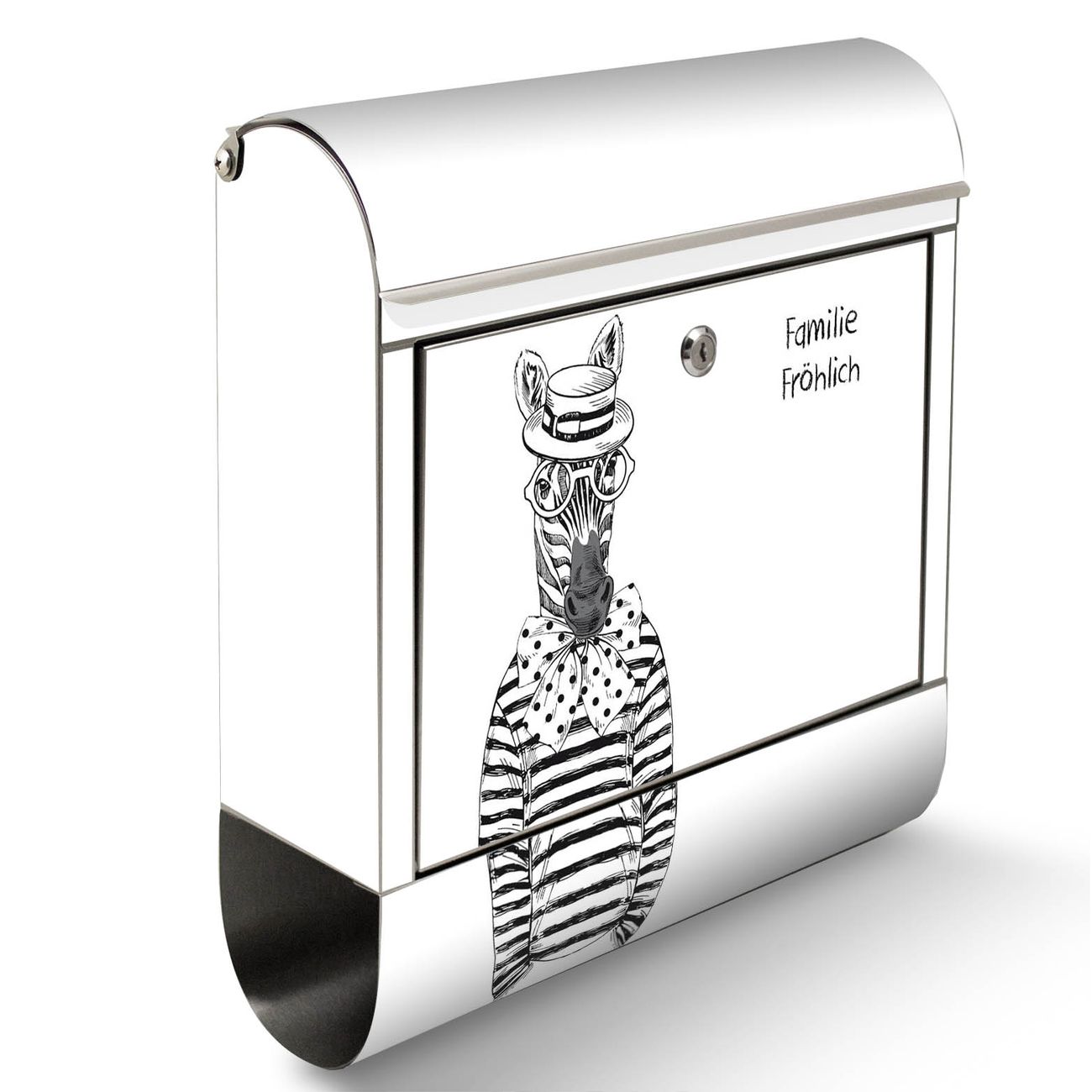 Der banjado Edelstahl Standbriefkasten mit Motiv Michael Stripes und eigenem Wunschtext bietet Ihnen mit seinem Fassungsvermögen genügend Platz auch für große A4 Sendungen. Das integrierte Zeitungsfach eignet sich hervorragend, um unkompliziert die Tageszeitung zu fassen.