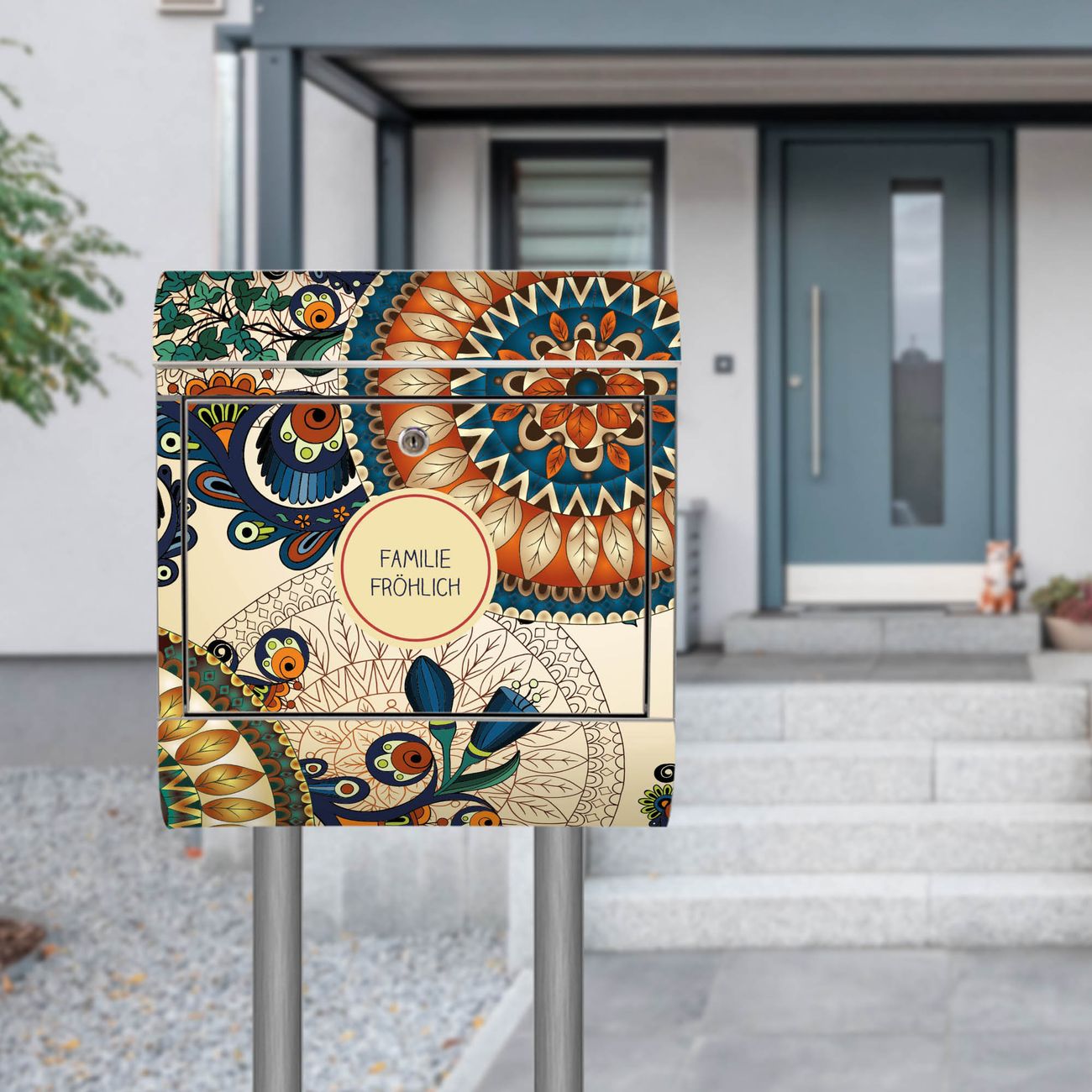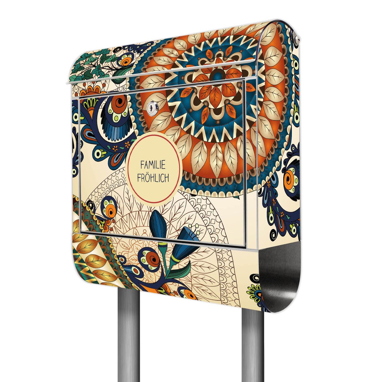 Der Motivstandbriefkasten hat ein sehr ansprechendes und ausgefallenes Design, damit entlocken Sie Ihren Nachbarn und dem Postboten ein Lächeln. Heben Sie Sich ab von der tristen grauen Masse, ohne auf Funktionalität zu verzichten. Der Briefkasten besteht aus hochwertigem 18/0 Edelstahl und die Wetter- und UV-resistenten Folie mit Modernes Mandala Motiv ist zusätzlich mit einem Schutzlaminat überzogen. Der Standbriefkasten wird mit Montagematerial und zwei Schlüsseln geliefert.