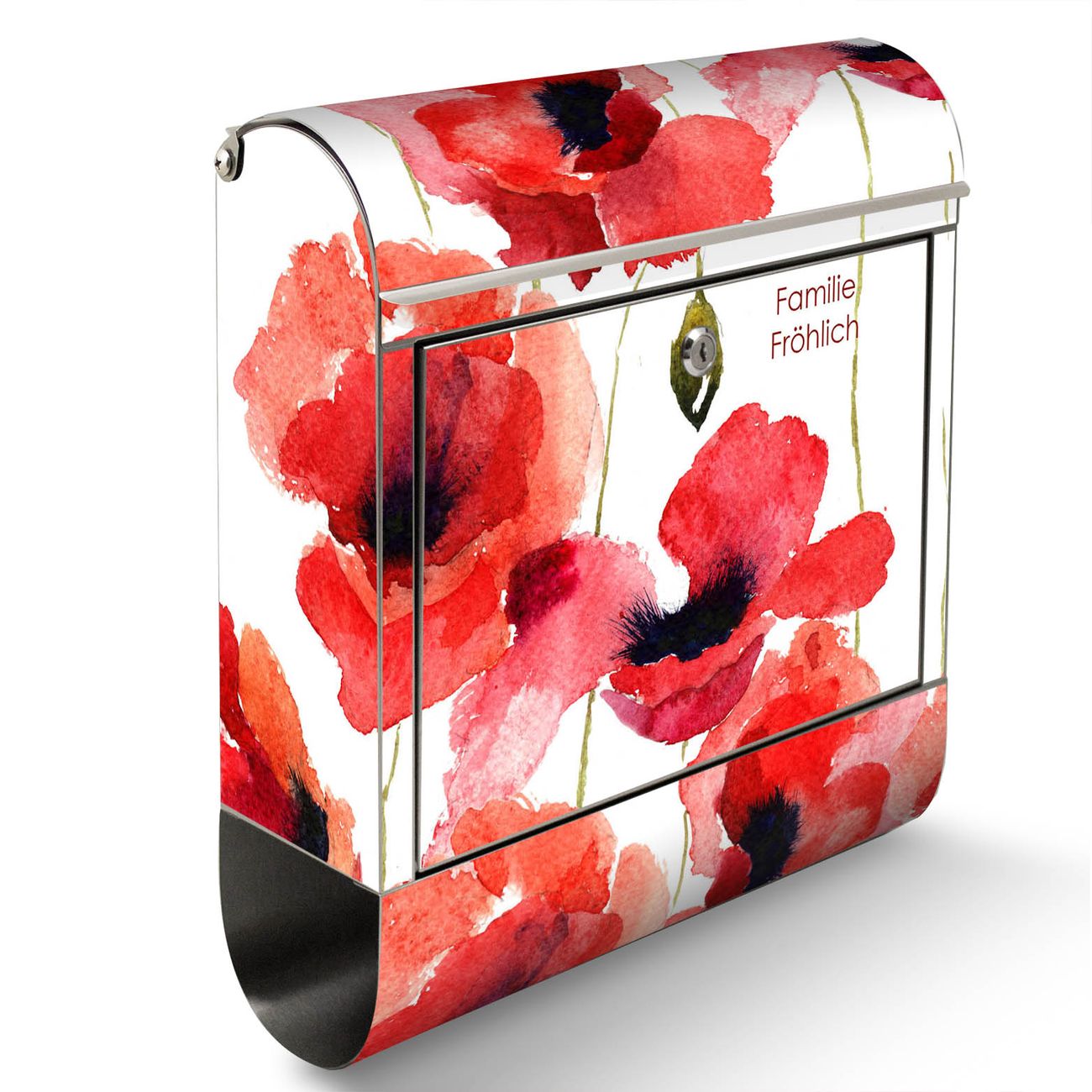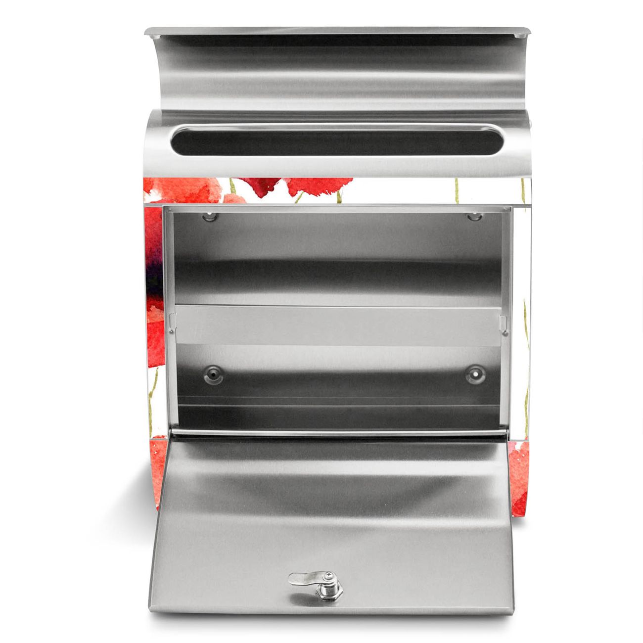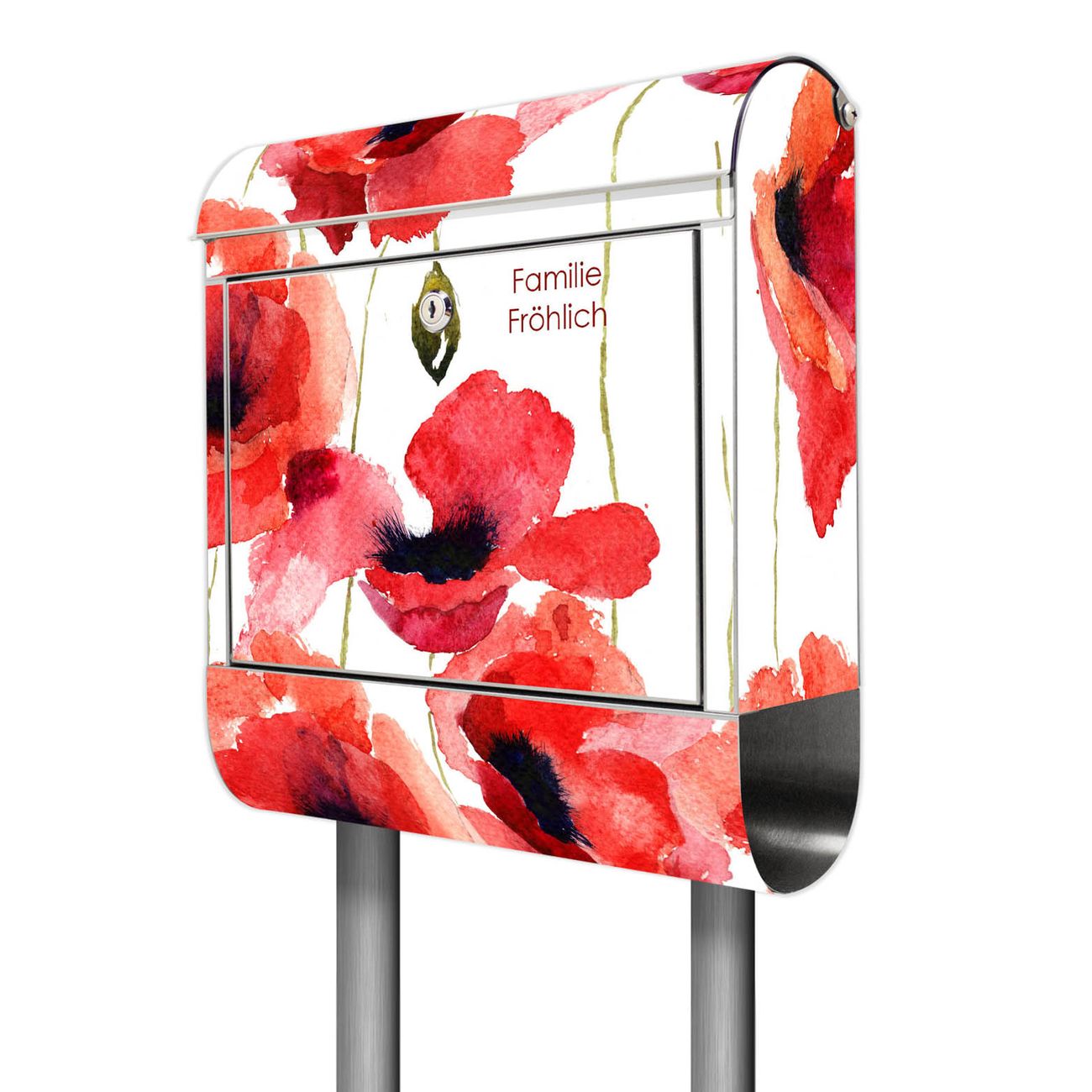 Der Motivstandbriefkasten hat ein sehr ansprechendes und ausgefallenes Design, damit entlocken Sie Ihren Nachbarn und dem Postboten ein Lächeln. Heben Sie Sich ab von der tristen grauen Masse, ohne auf Funktionalität zu verzichten. Der Briefkasten besteht aus hochwertigem 18/0 Edelstahl und die Wetter- und UV-resistenten Folie mit Mohn Aquarell Motiv ist zusätzlich mit einem Schutzlaminat überzogen. Der Standbriefkasten wird mit Montagematerial und zwei Schlüsseln geliefert.