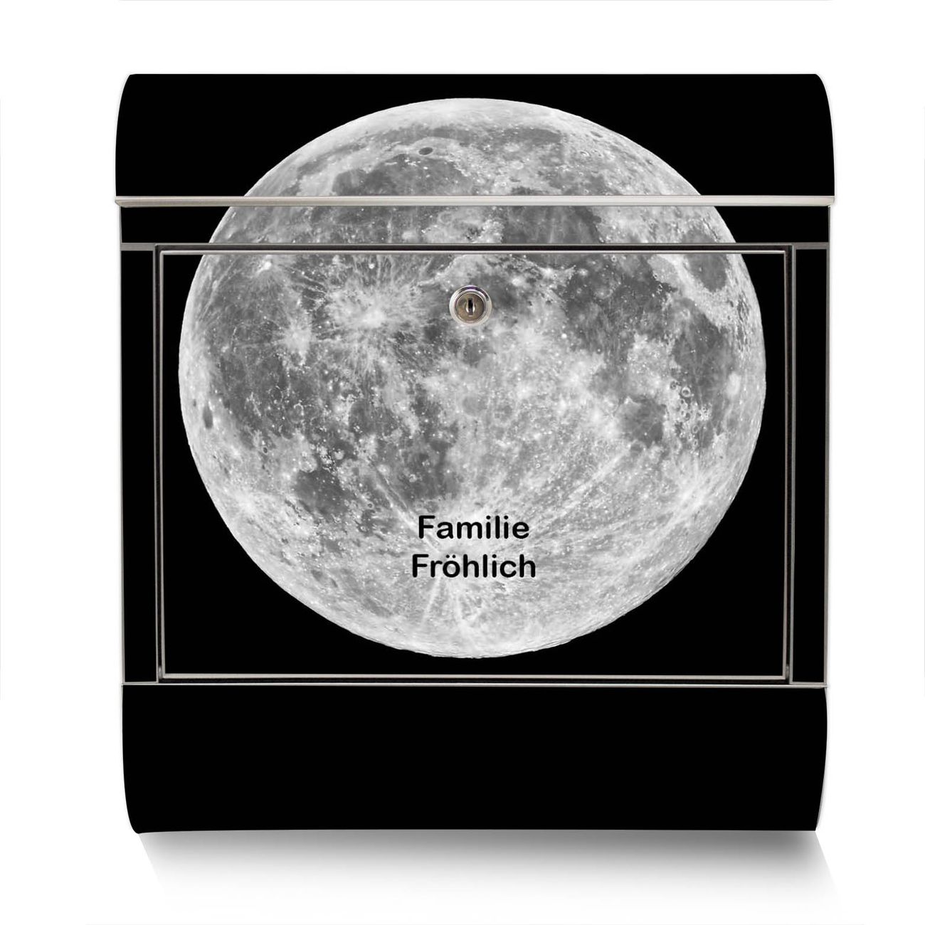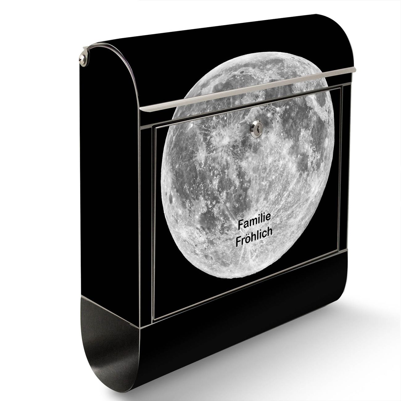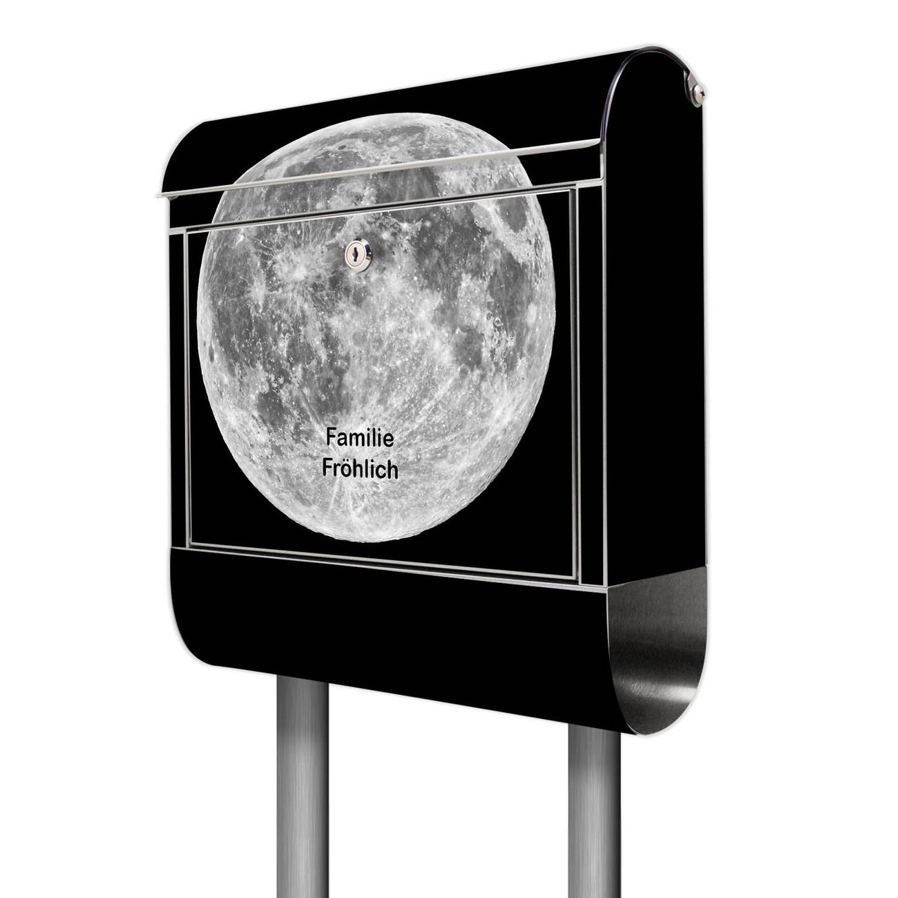 Der banjado Edelstahl Standbriefkasten mit Motiv Mond und eigenem Wunschtext bietet Ihnen mit seinem Fassungsvermögen genügend Platz auch für große A4 Sendungen. Das integrierte Zeitungsfach eignet sich hervorragend, um unkompliziert die Tageszeitung zu fassen.