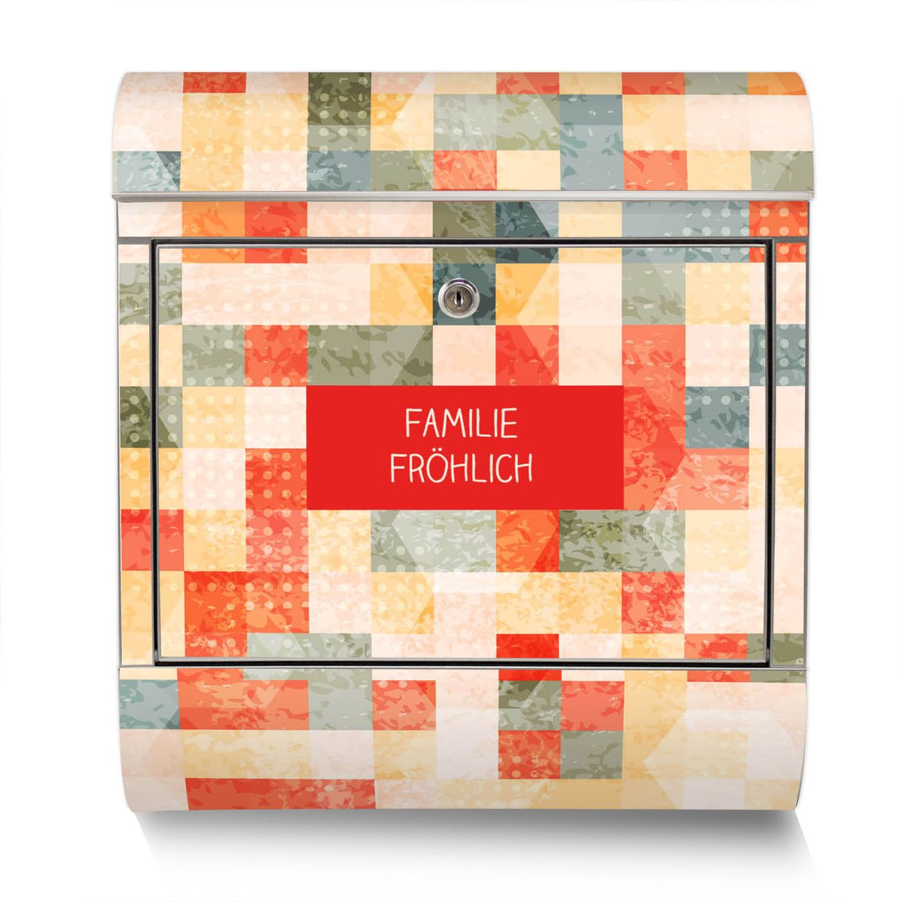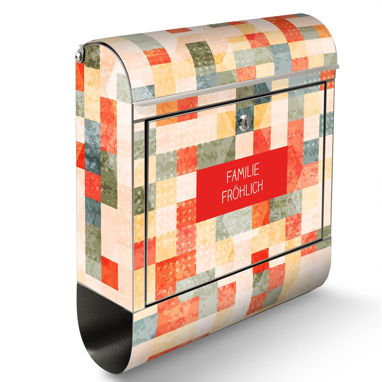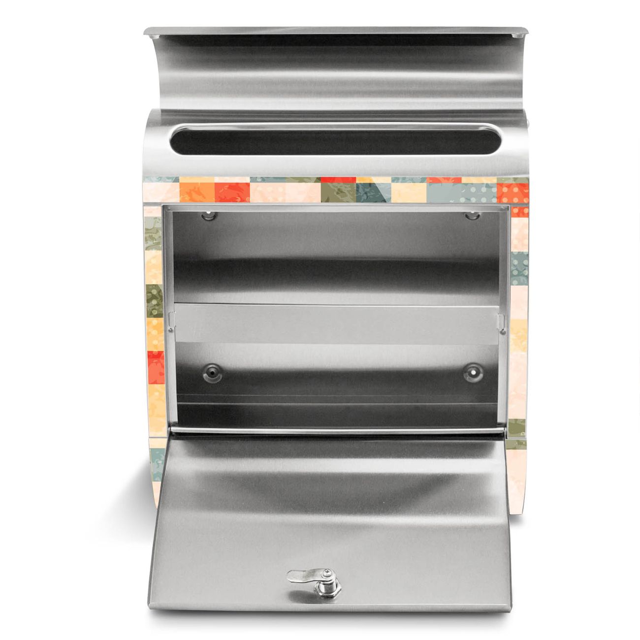 Der banjado Edelstahl Standbriefkasten mit Motiv Mosaik Rot und eigenem Wunschtext bietet Ihnen mit seinem Fassungsvermögen genügend Platz auch für große A4 Sendungen. Das integrierte Zeitungsfach eignet sich hervorragend, um unkompliziert die Tageszeitung zu fassen.