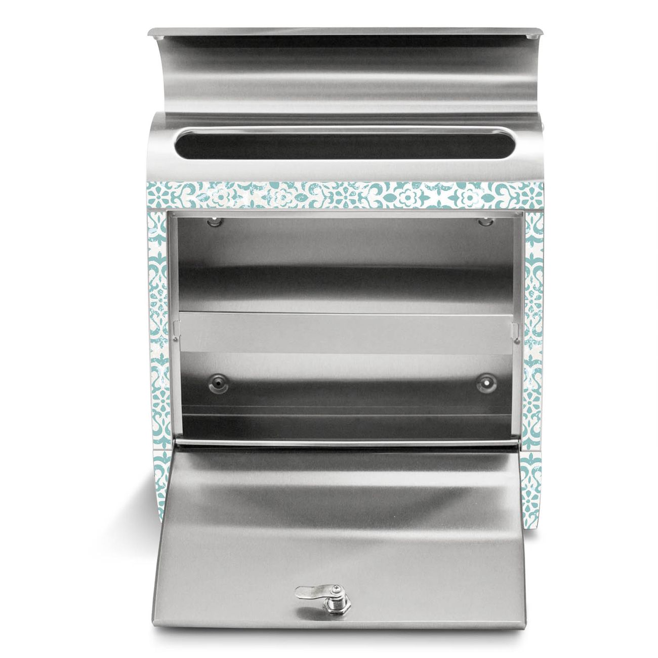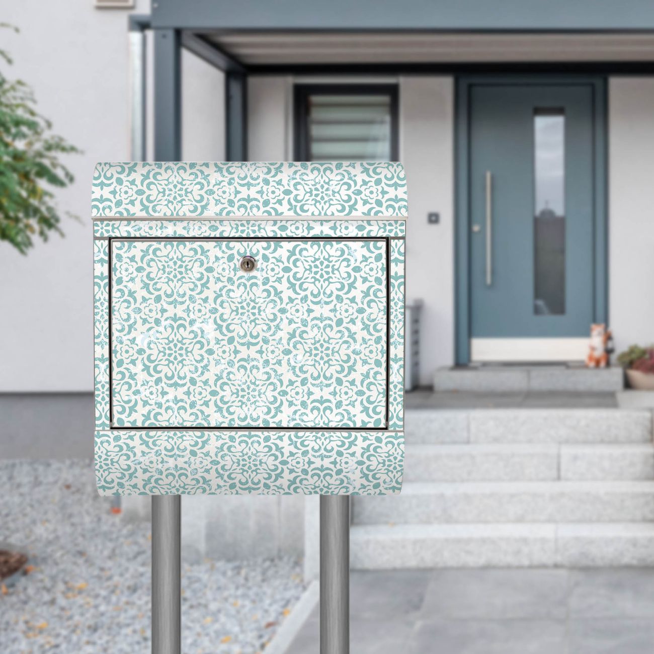 Standbriefkasten Edelstahl Muster Getupft Blau