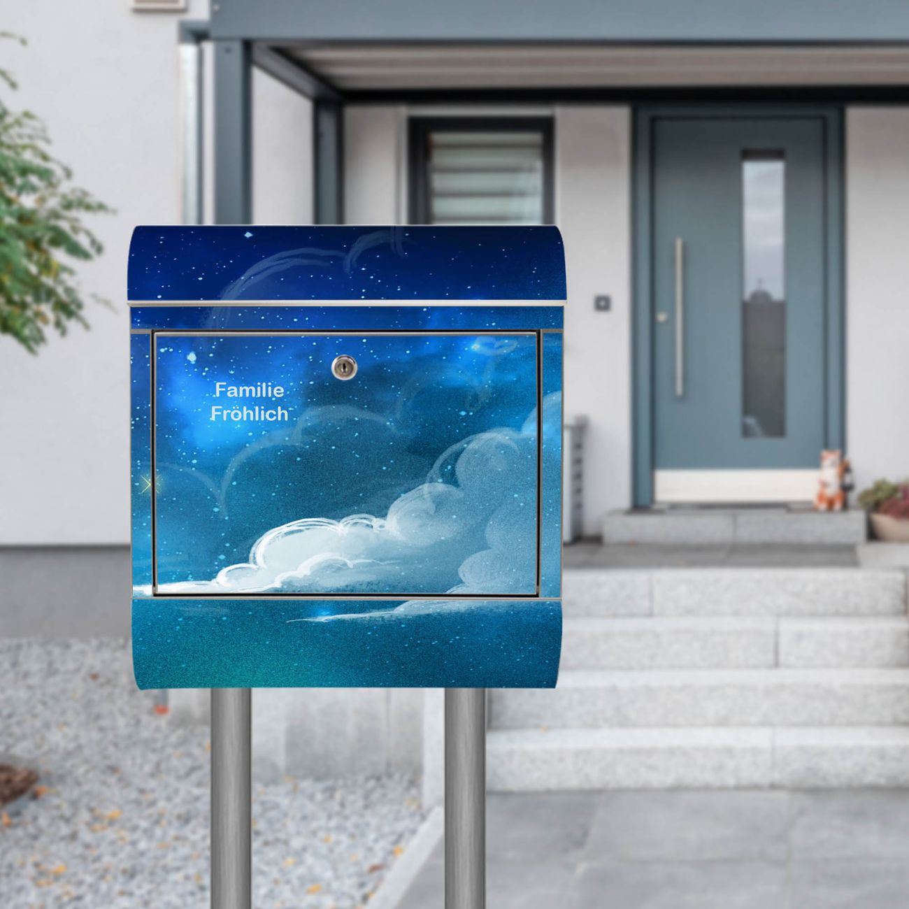 Standbriefkasten Edelstahl Nachthimmel 1
