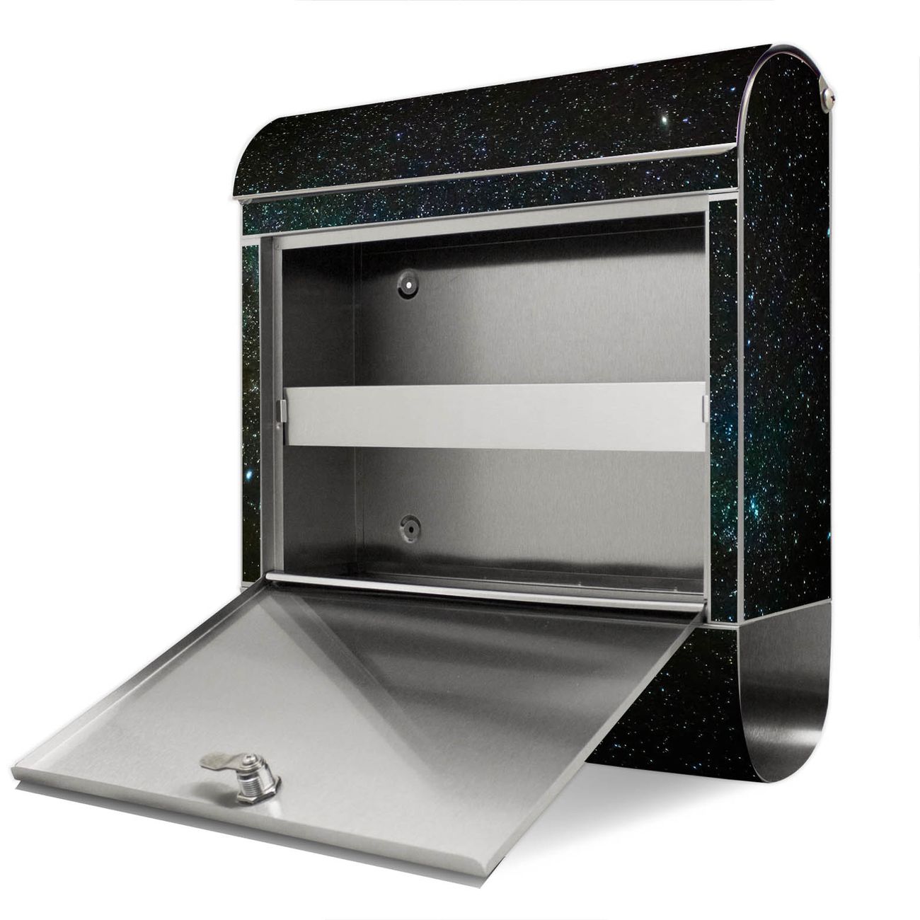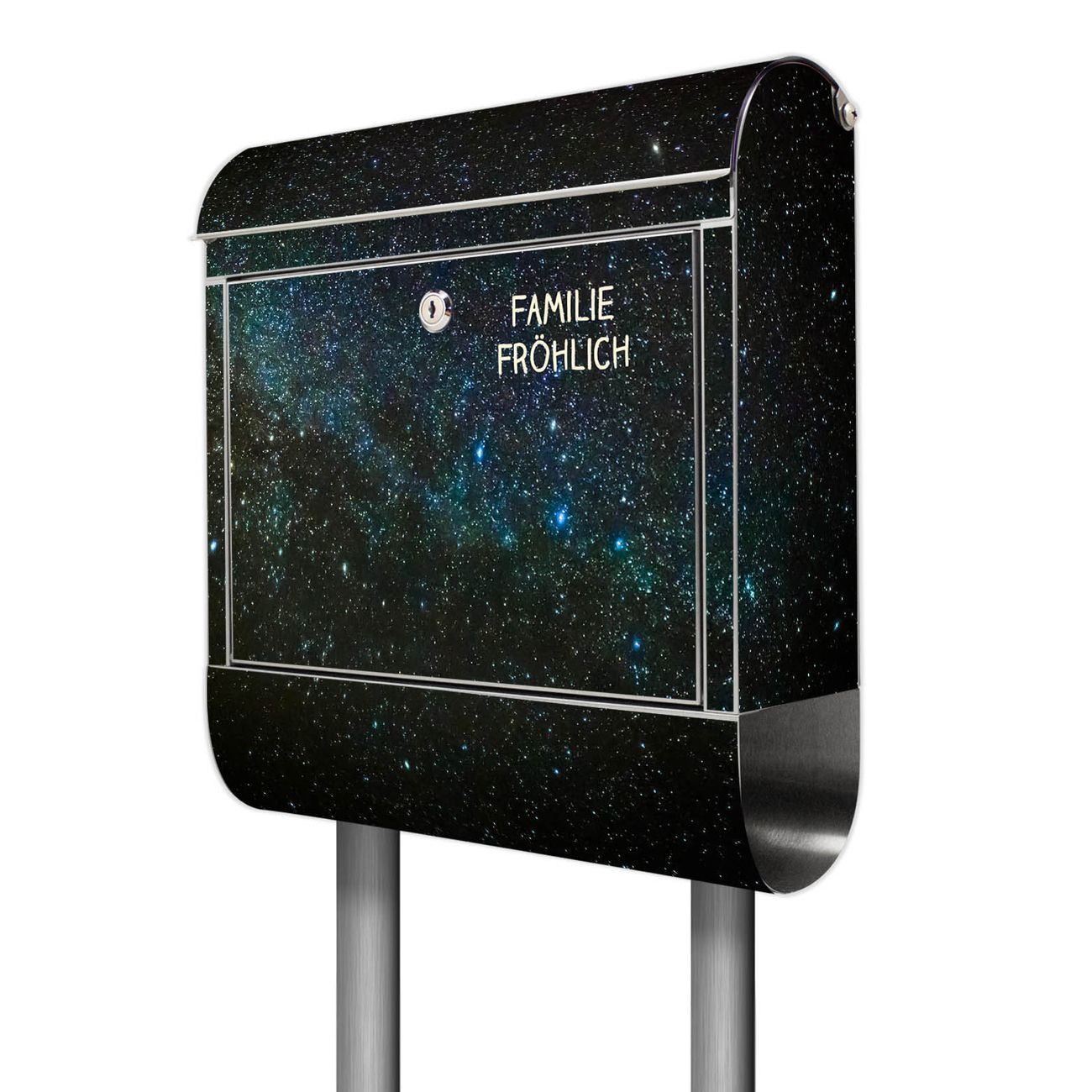 Der Motivstandbriefkasten hat ein sehr ansprechendes und ausgefallenes Design, damit entlocken Sie Ihren Nachbarn und dem Postboten ein Lächeln. Heben Sie Sich ab von der tristen grauen Masse, ohne auf Funktionalität zu verzichten. Der Briefkasten besteht aus hochwertigem 18/0 Edelstahl und die Wetter- und UV-resistenten Folie mit Nachthimmel Motiv ist zusätzlich mit einem Schutzlaminat überzogen. Der Standbriefkasten wird mit Montagematerial und zwei Schlüsseln geliefert.
