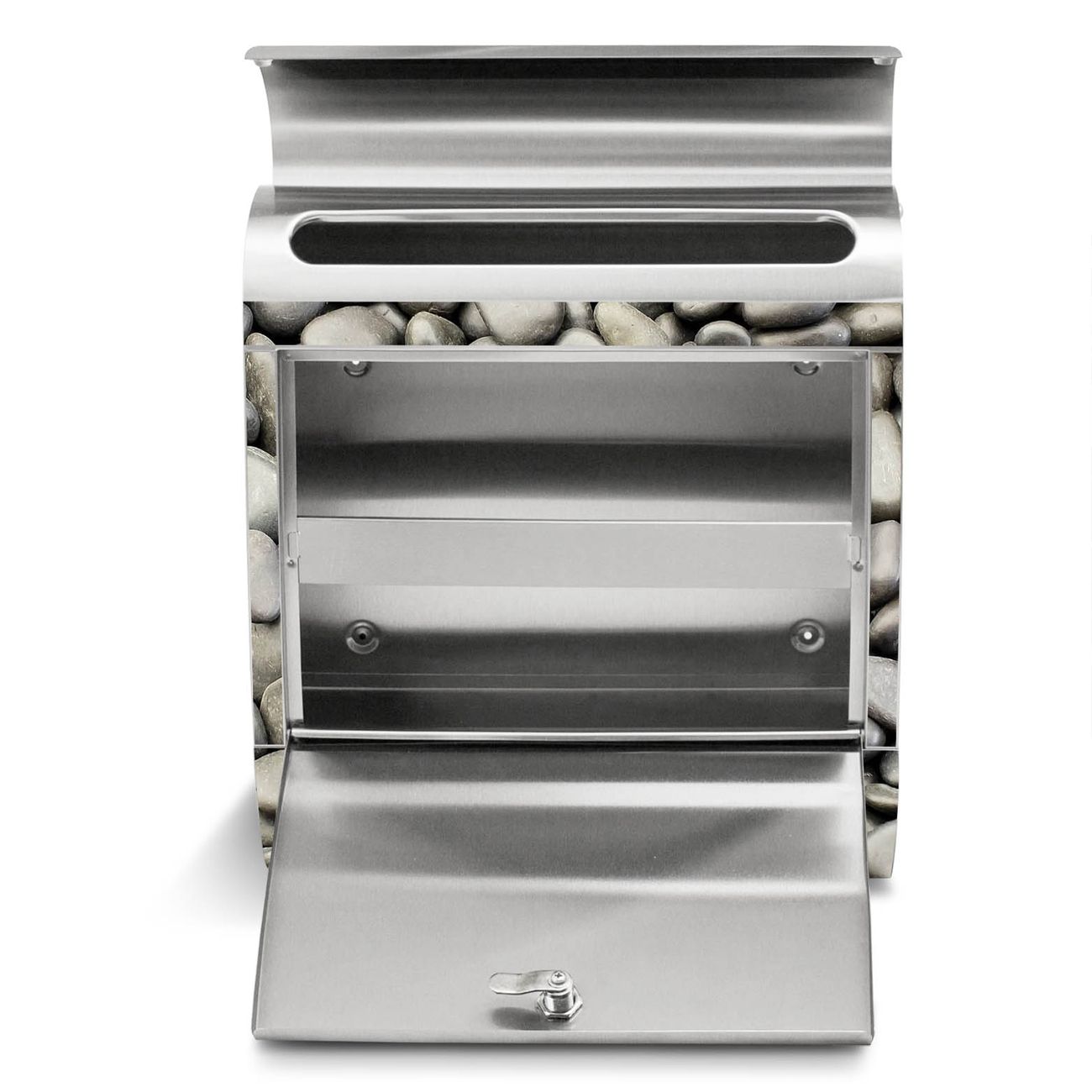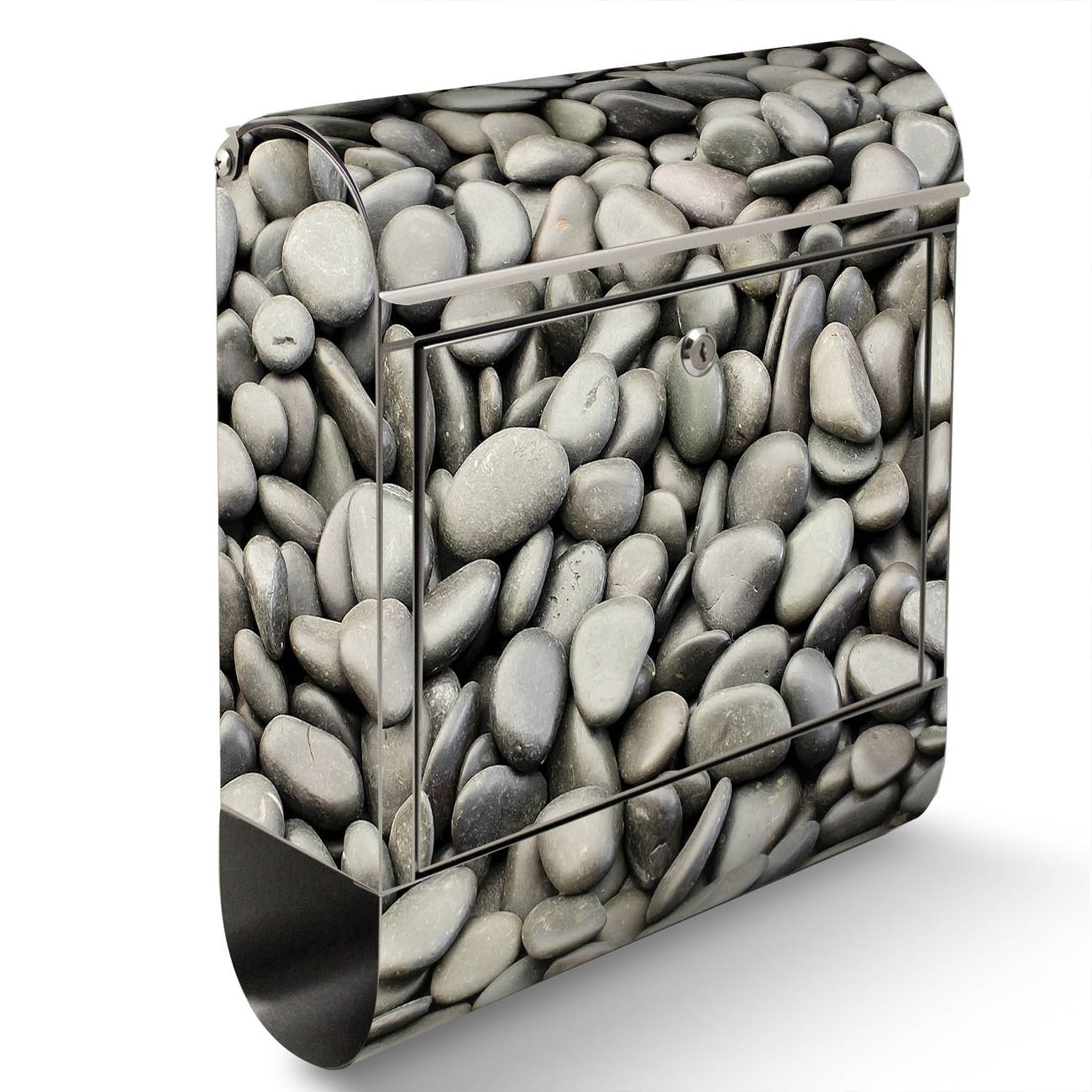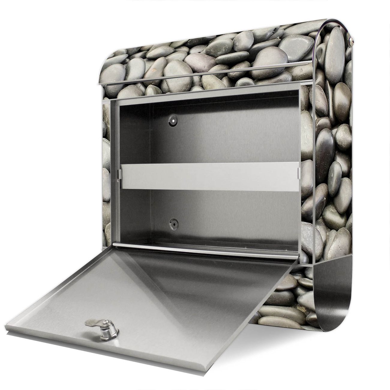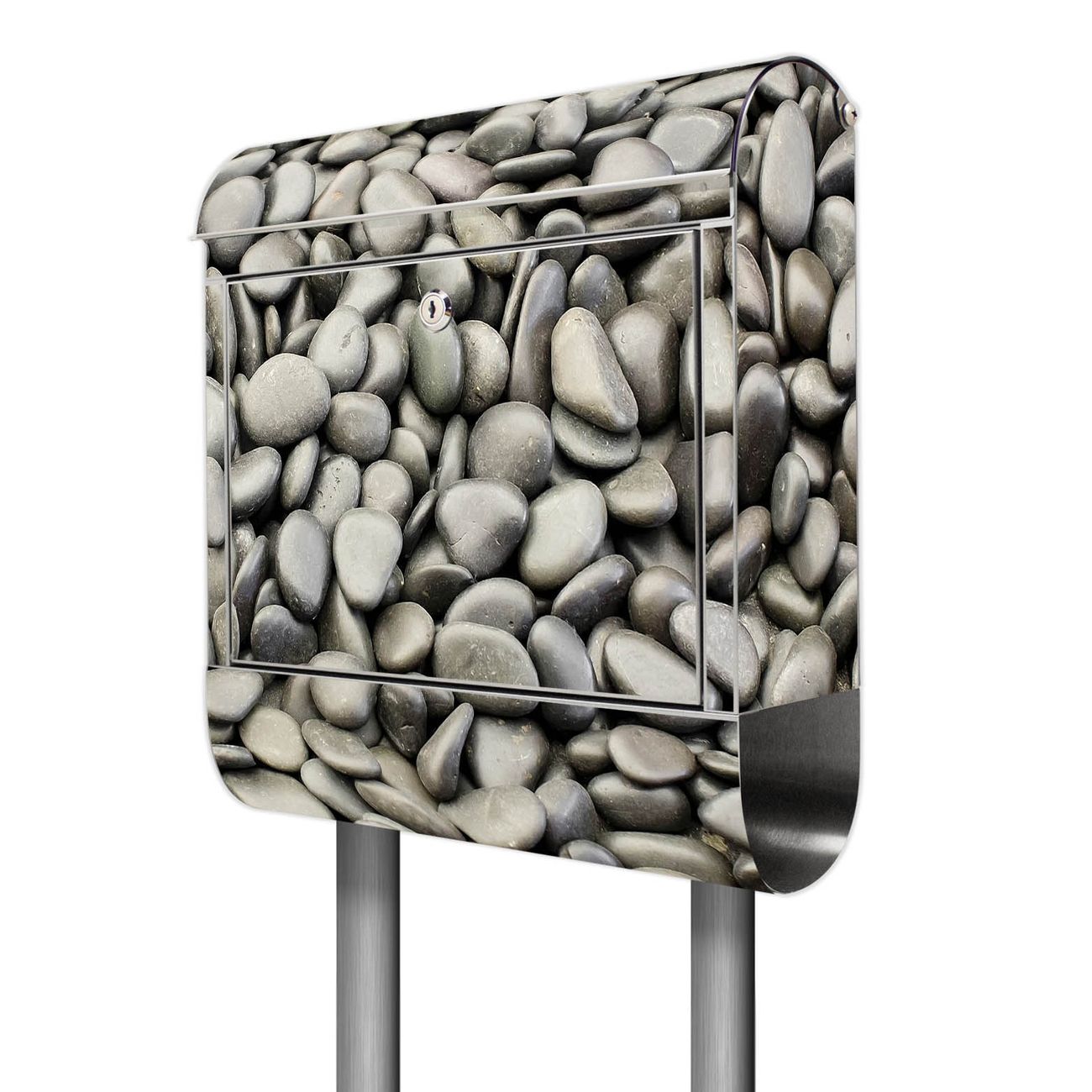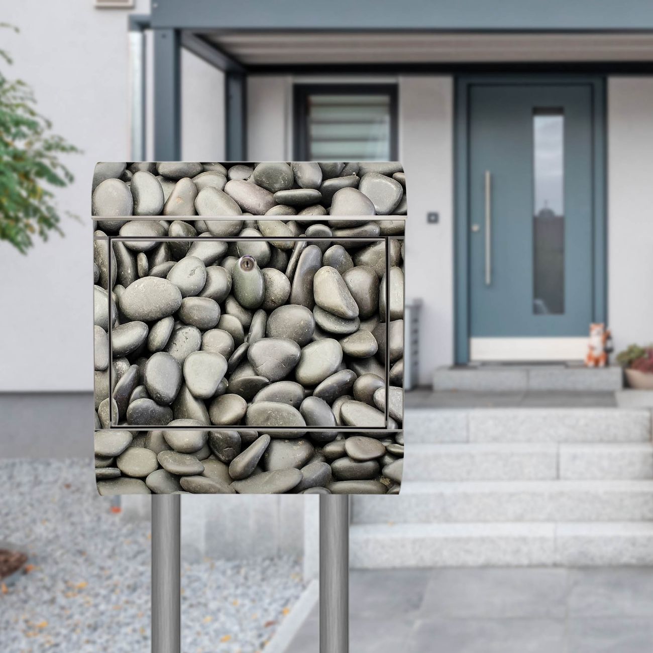 Der banjado Edelstahl Standbriefkasten mit Motiv Nasse Kiesel bietet Ihnen mit seinem Fassungsvermögen genügend Platz auch für große A4 Sendungen. Das integrierte Zeitungsfach eignet sich hervorragend, um unkompliziert die Tageszeitung zu fassen.