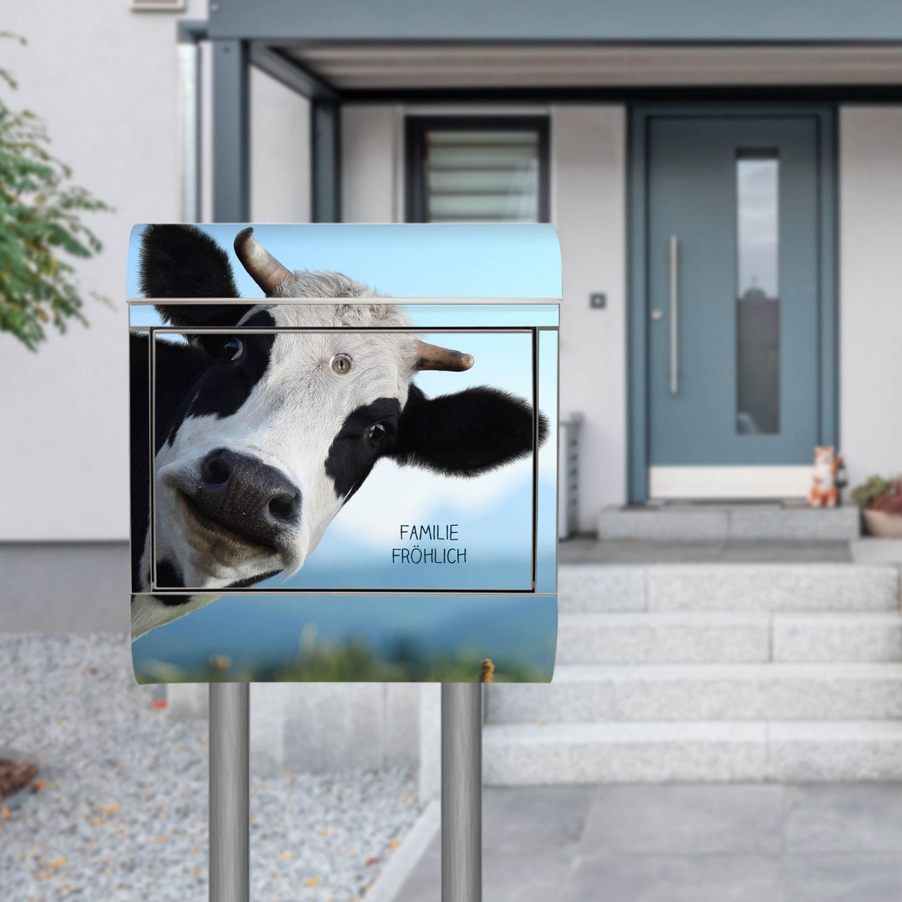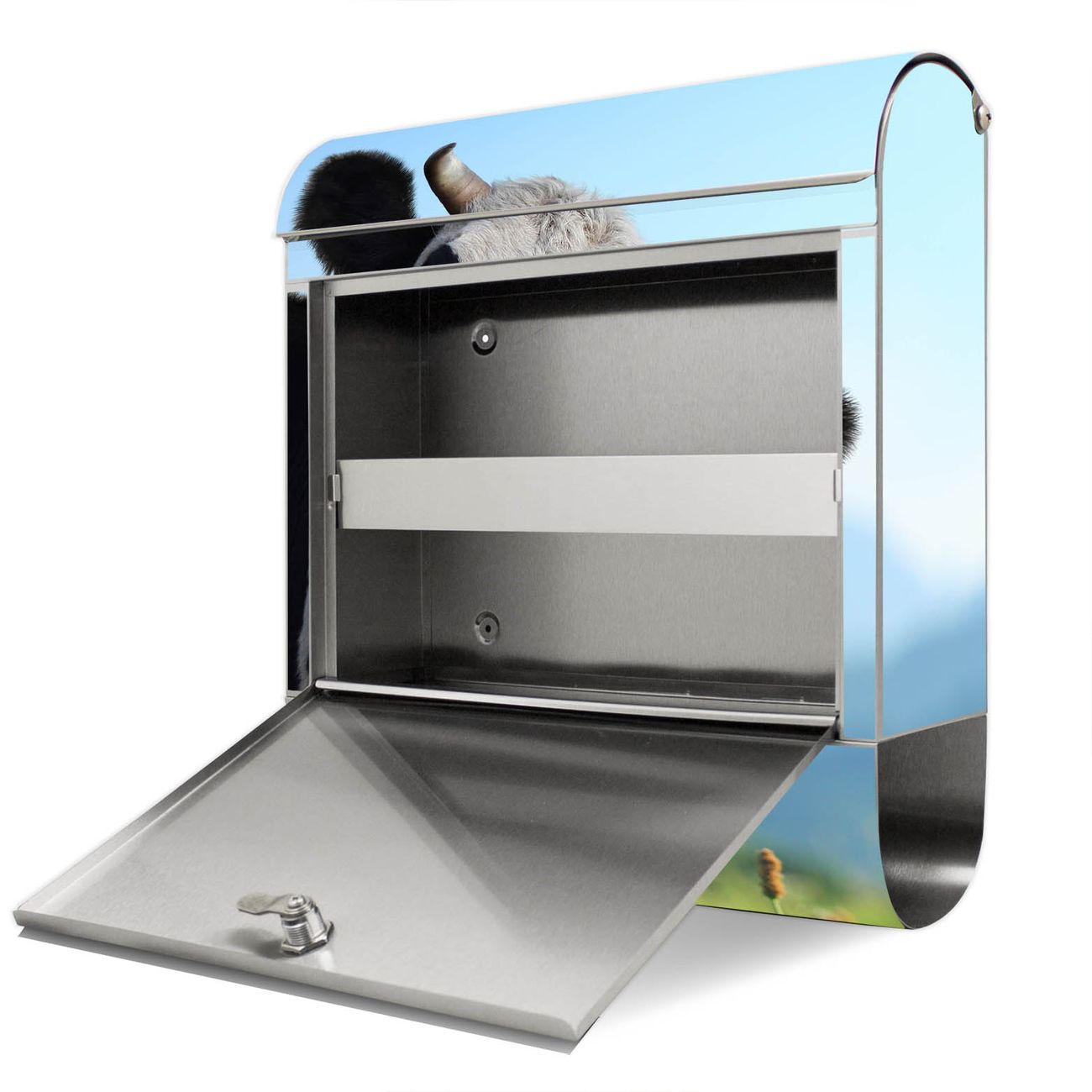 Der banjado Edelstahl Standbriefkasten mit Motiv Neugierig und eigenem Wunschtext bietet Ihnen mit seinem Fassungsvermögen genügend Platz auch für große A4 Sendungen. Das integrierte Zeitungsfach eignet sich hervorragend, um unkompliziert die Tageszeitung zu fassen.