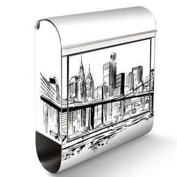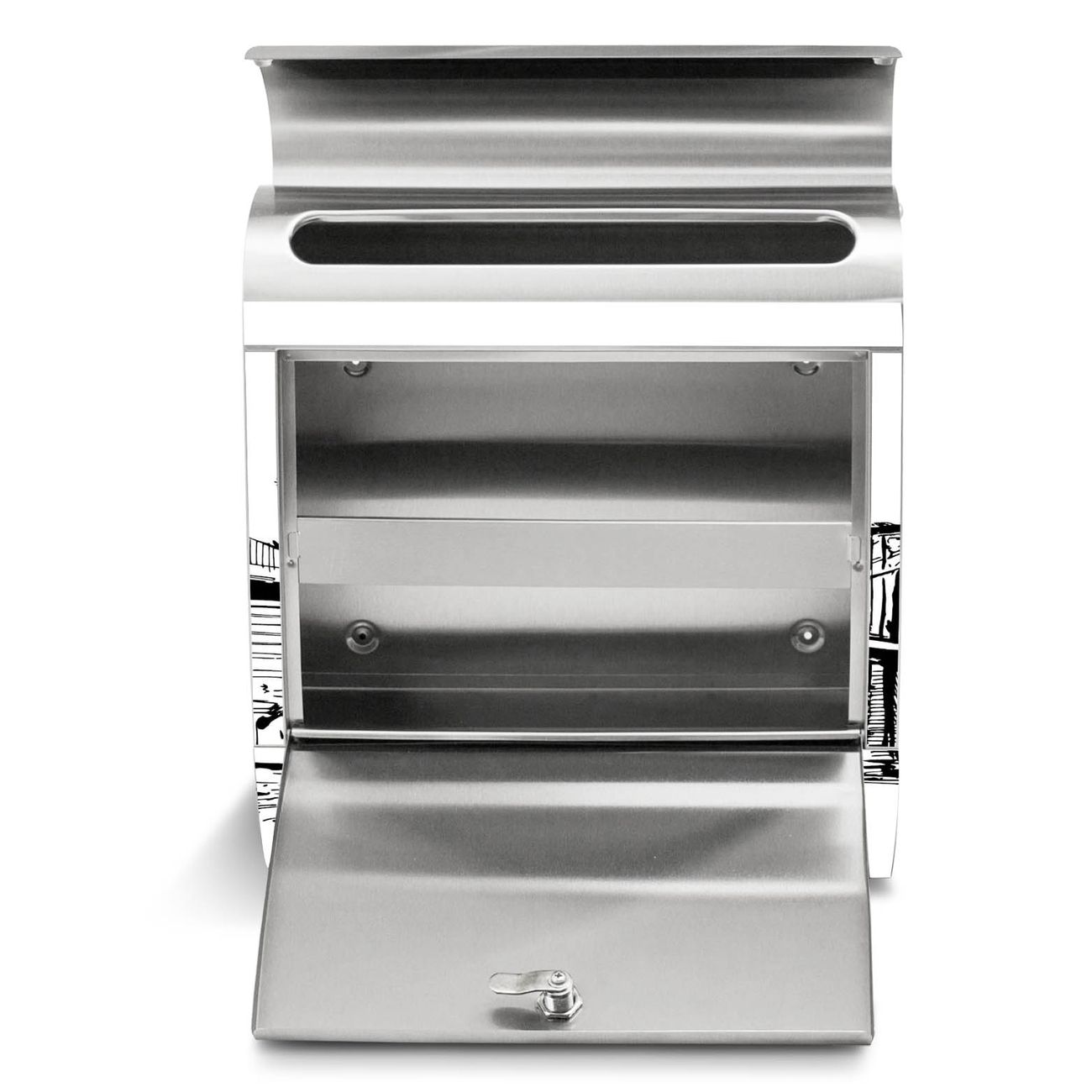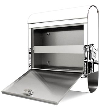 Der banjado Edelstahl Standbriefkasten mit Motiv New York Skizze bietet Ihnen mit seinem Fassungsvermögen genügend Platz auch für große A4 Sendungen. Das integrierte Zeitungsfach eignet sich hervorragend, um unkompliziert die Tageszeitung zu fassen.