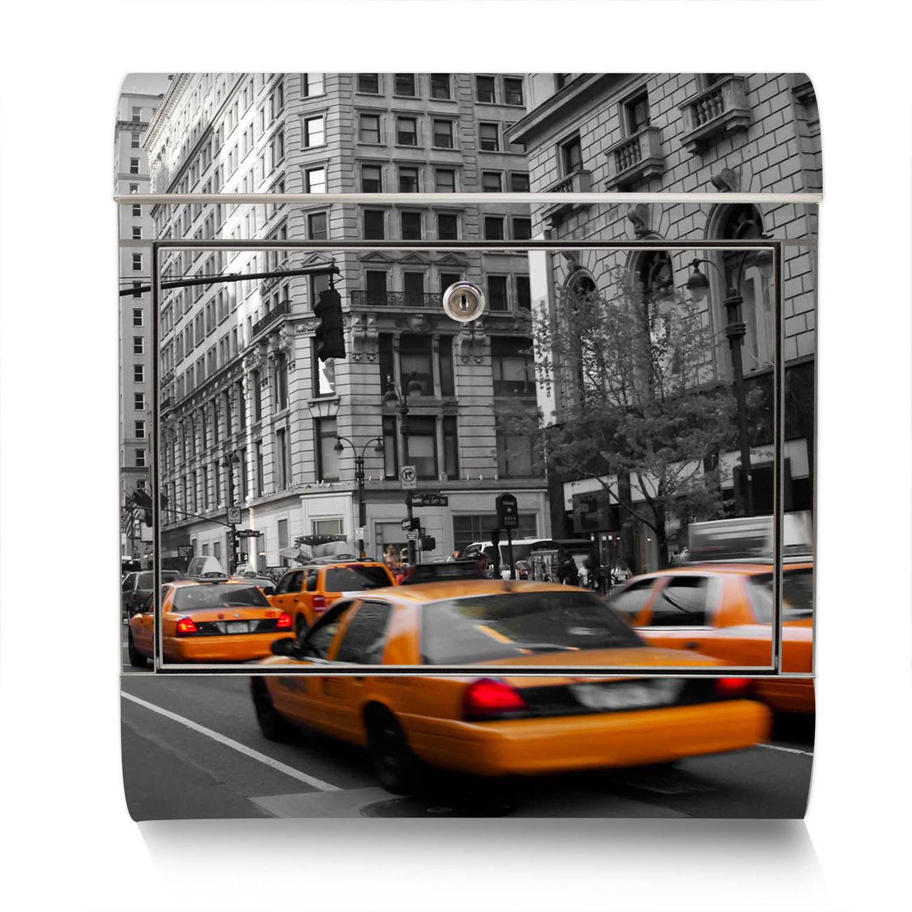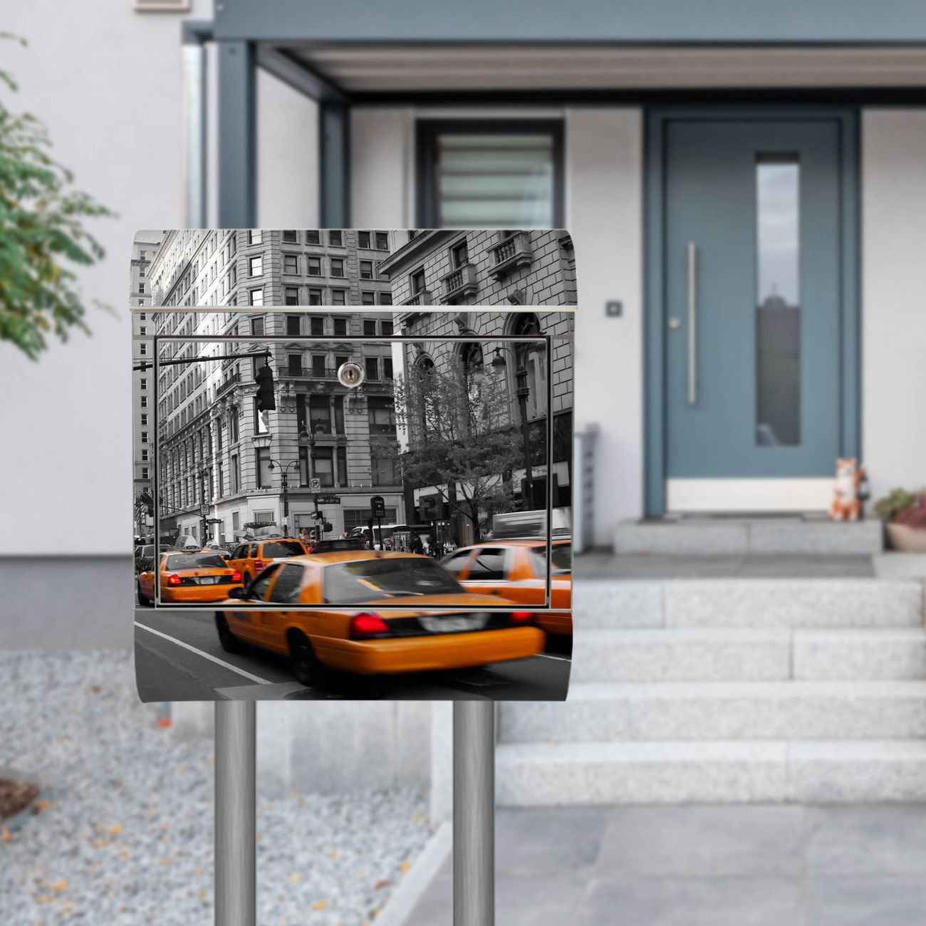 Der Motivstandbriefkasten hat ein sehr ansprechendes und ausgefallenes Design, damit entlocken Sie Ihren Nachbarn und dem Postboten ein Lächeln. Heben Sie Sich ab von der tristen grauen Masse, ohne auf Funktionalität zu verzichten. Der Briefkasten besteht aus hochwertigem 18/0 Edelstahl und die Wetter- und UV-resistenten Folie mit New York Taxi Motiv ist zusätzlich mit einem Schutzlaminat überzogen. Der Standbriefkasten wird mit Montagematerial und zwei Schlüsseln geliefert.