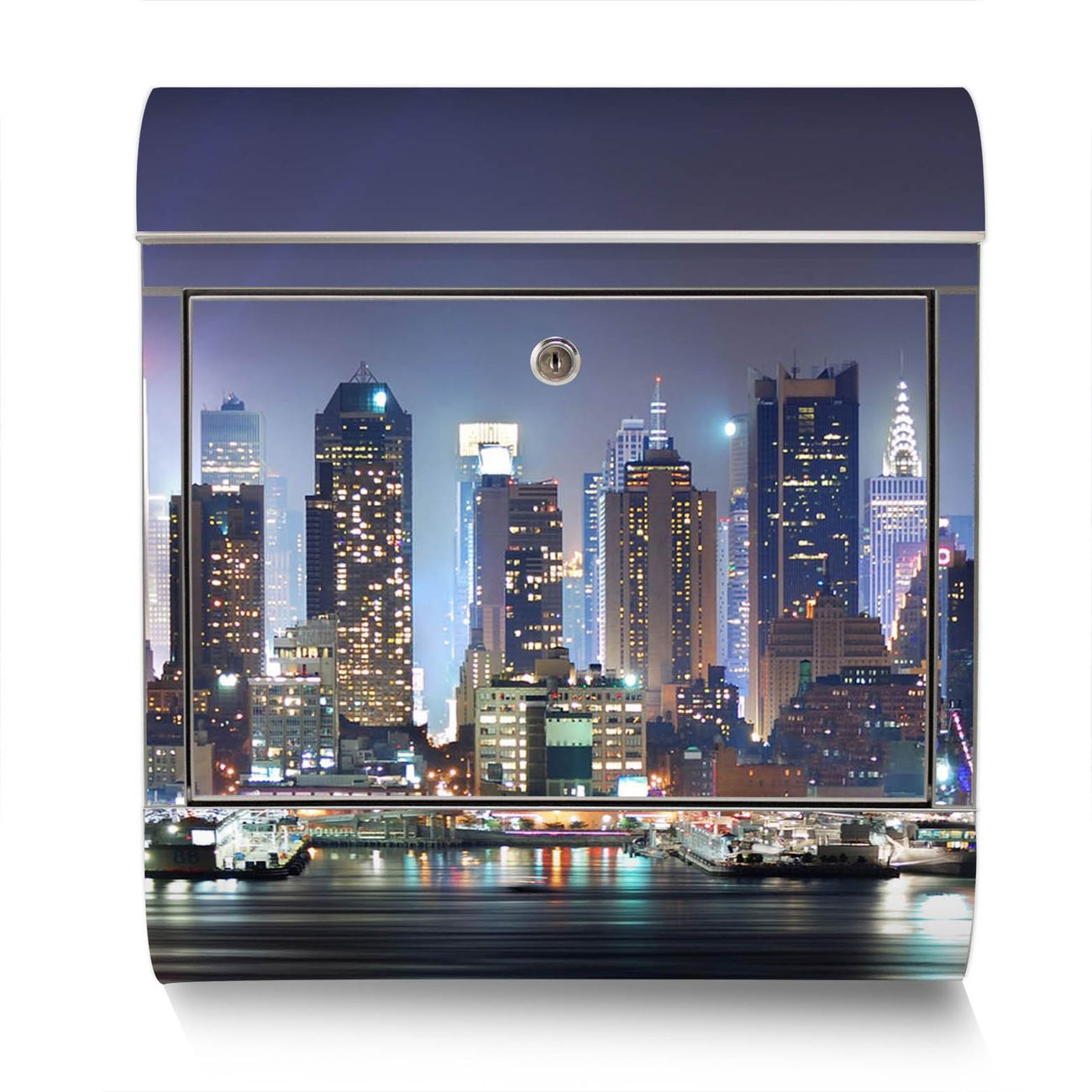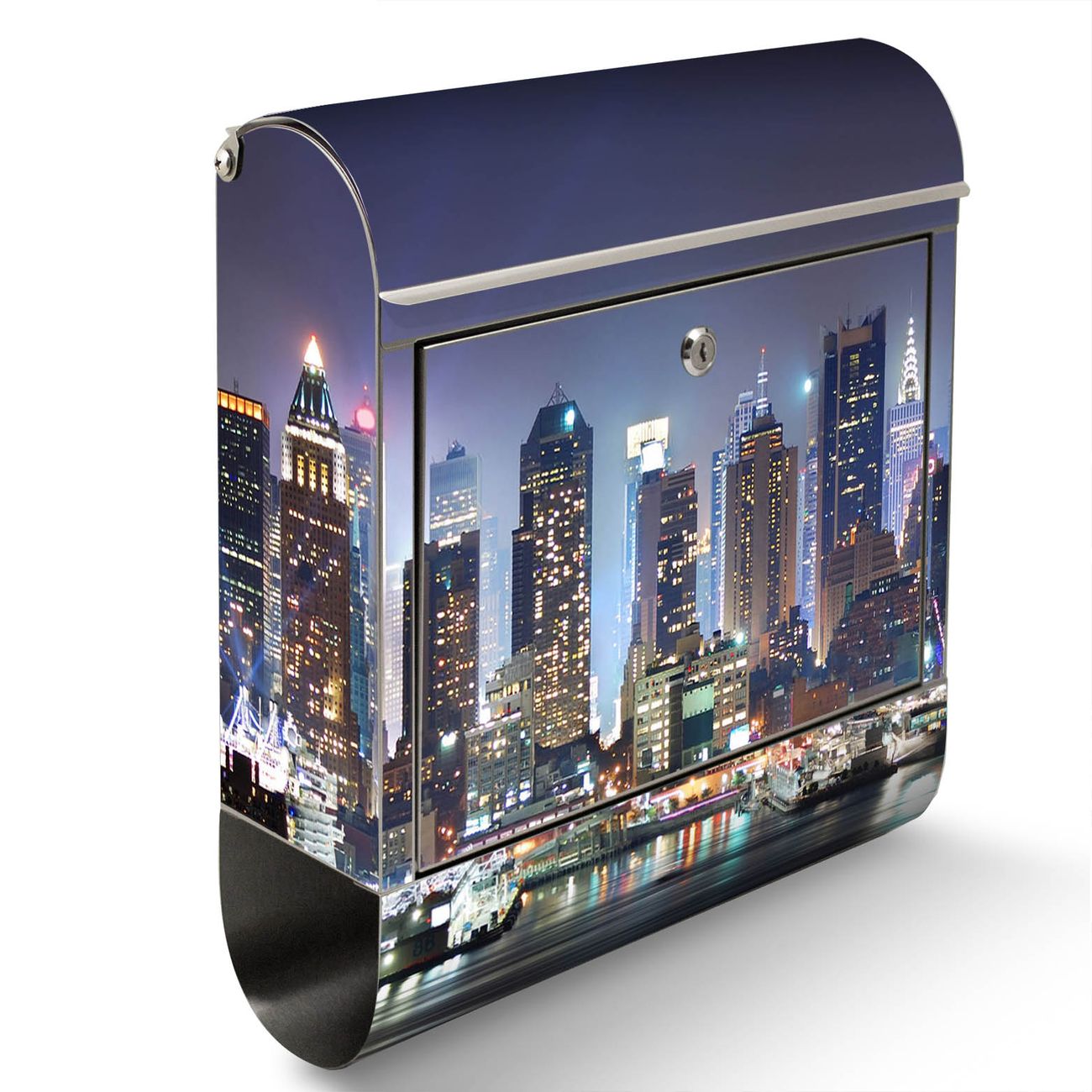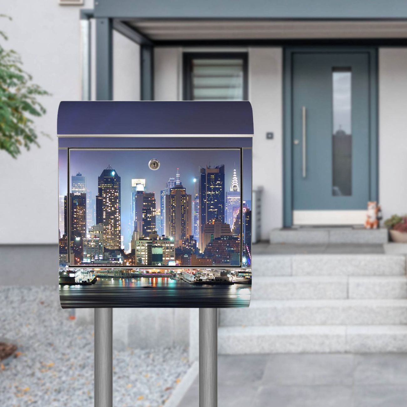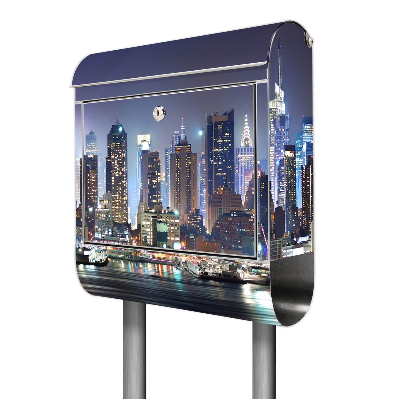 Der Motivstandbriefkasten hat ein sehr ansprechendes und ausgefallenes Design, damit entlocken Sie Ihren Nachbarn und dem Postboten ein Lächeln. Heben Sie Sich ab von der tristen grauen Masse, ohne auf Funktionalität zu verzichten. Der Briefkasten besteht aus hochwertigem 18/0 Edelstahl und die Wetter- und UV-resistenten Folie mit New York Motiv ist zusätzlich mit einem Schutzlaminat überzogen. Der Standbriefkasten wird mit Montagematerial und zwei Schlüsseln geliefert.