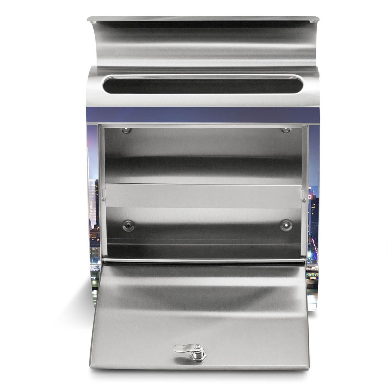 Der Motivstandbriefkasten hat ein sehr ansprechendes und ausgefallenes Design, damit entlocken Sie Ihren Nachbarn und dem Postboten ein Lächeln. Heben Sie Sich ab von der tristen grauen Masse, ohne auf Funktionalität zu verzichten. Der Briefkasten besteht aus hochwertigem 18/0 Edelstahl und die Wetter- und UV-resistenten Folie mit New York Motiv ist zusätzlich mit einem Schutzlaminat überzogen. Der Standbriefkasten wird mit Montagematerial und zwei Schlüsseln geliefert.