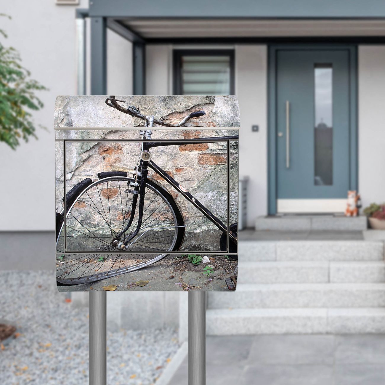 Standbriefkasten Edelstahl Nostalgie Rad