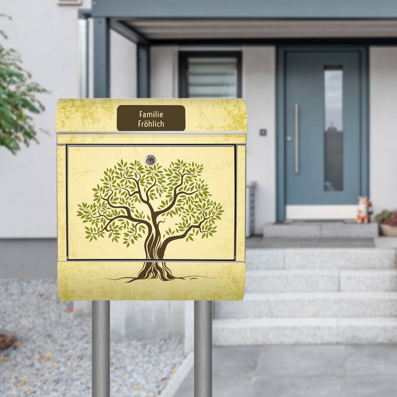 Standbriefkasten Edelstahl Olivenbaum
