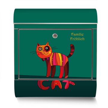 Der banjado Edelstahl Standbriefkasten mit Motiv Orange Katze und eigenem Wunschtext bietet Ihnen mit seinem Fassungsvermögen genügend Platz auch für große A4 Sendungen. Das integrierte Zeitungsfach eignet sich hervorragend, um unkompliziert die Tageszeitung zu fassen.