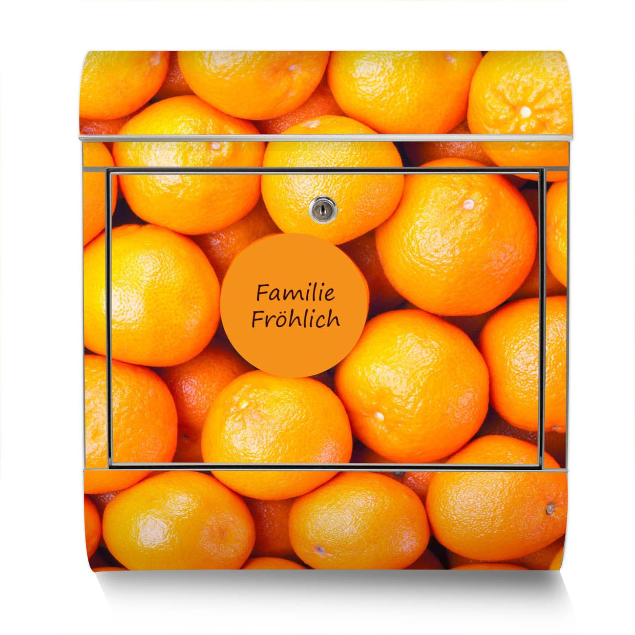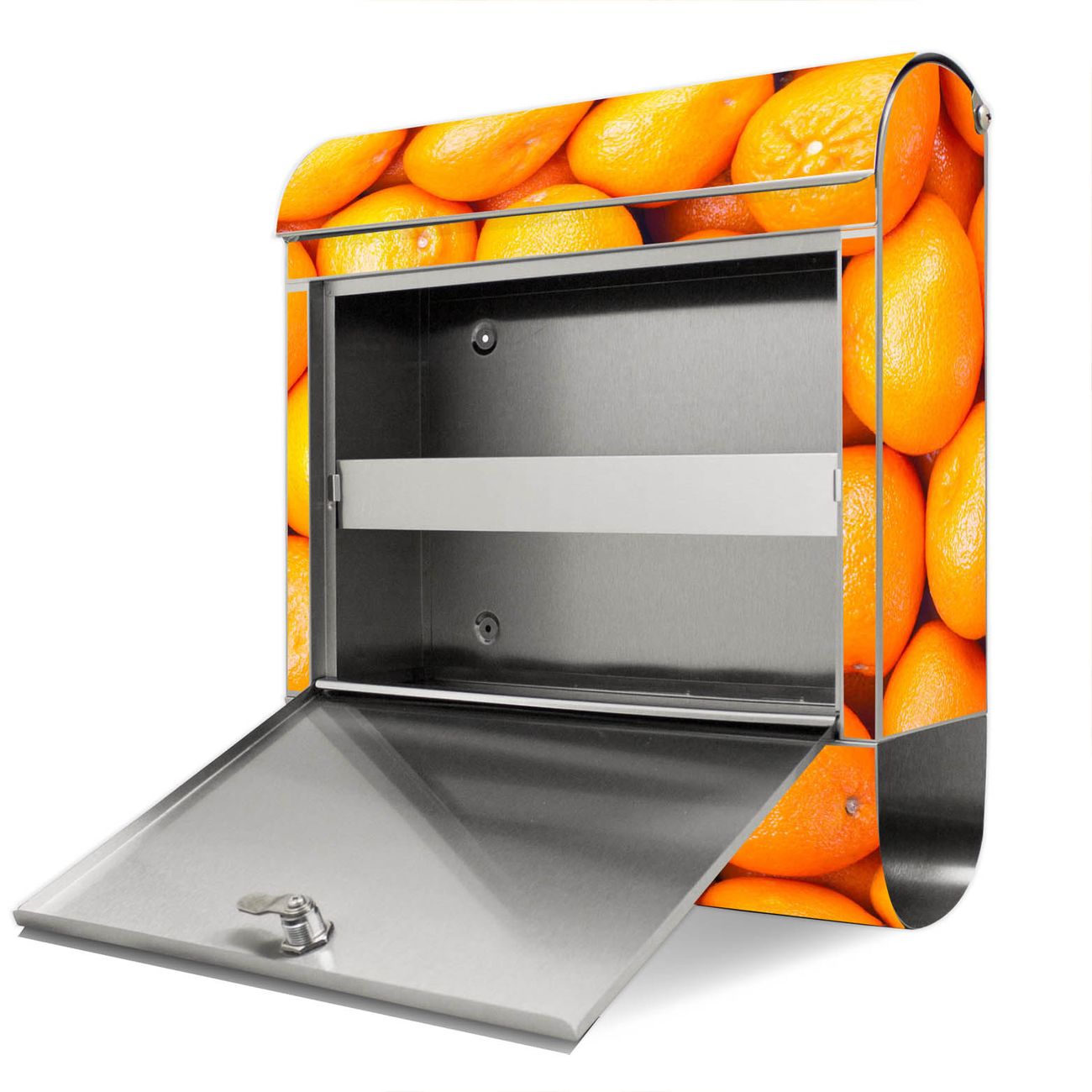 Der Motivstandbriefkasten hat ein sehr ansprechendes und ausgefallenes Design, damit entlocken Sie Ihren Nachbarn und dem Postboten ein Lächeln. Heben Sie Sich ab von der tristen grauen Masse, ohne auf Funktionalität zu verzichten. Der Briefkasten besteht aus hochwertigem 18/0 Edelstahl und die Wetter- und UV-resistenten Folie mit Orangen Motiv ist zusätzlich mit einem Schutzlaminat überzogen. Der Standbriefkasten wird mit Montagematerial und zwei Schlüsseln geliefert.