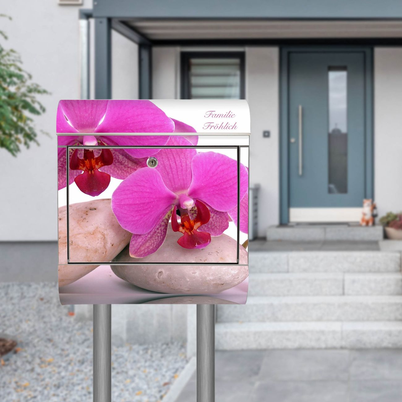 Standbriefkasten Edelstahl Orchidee
