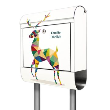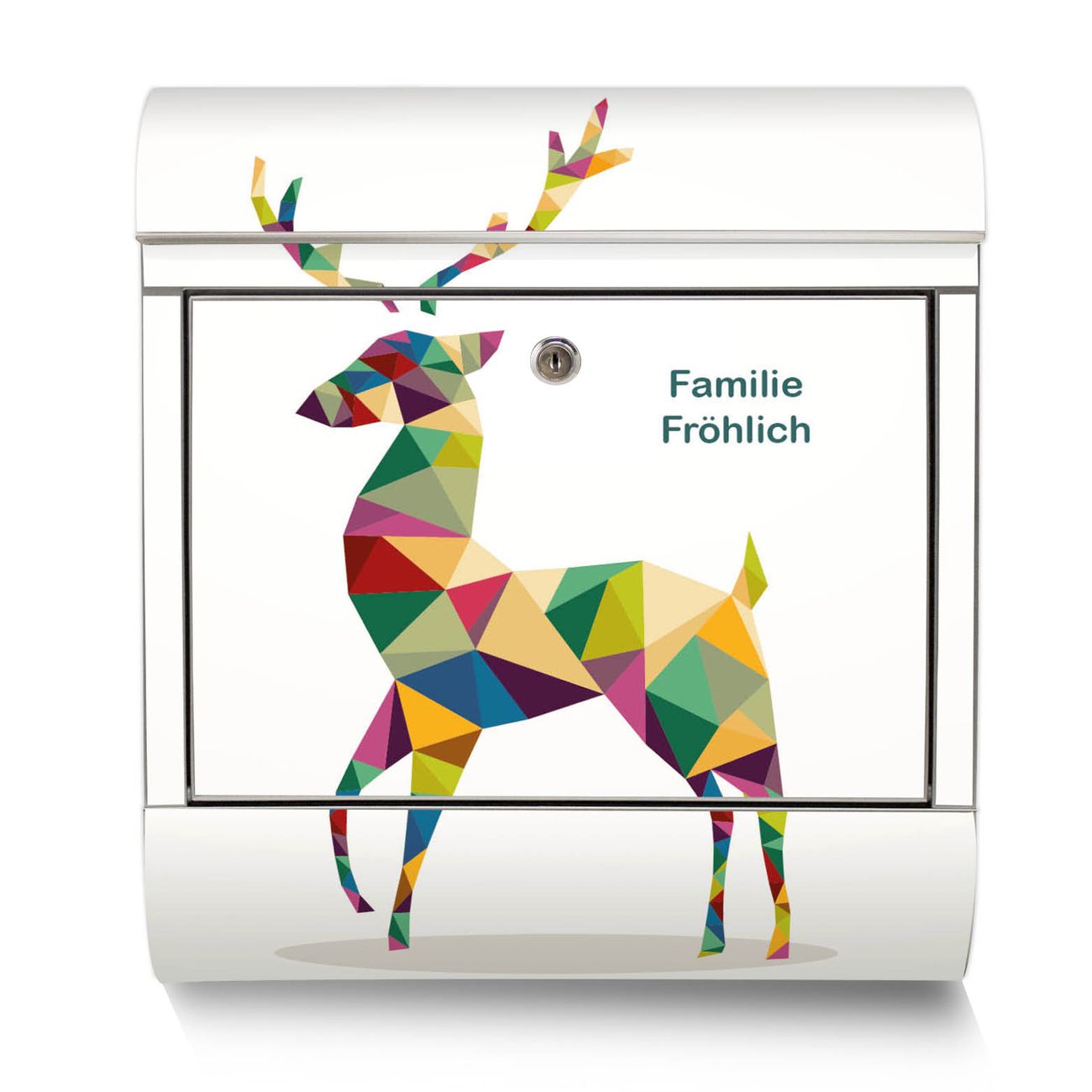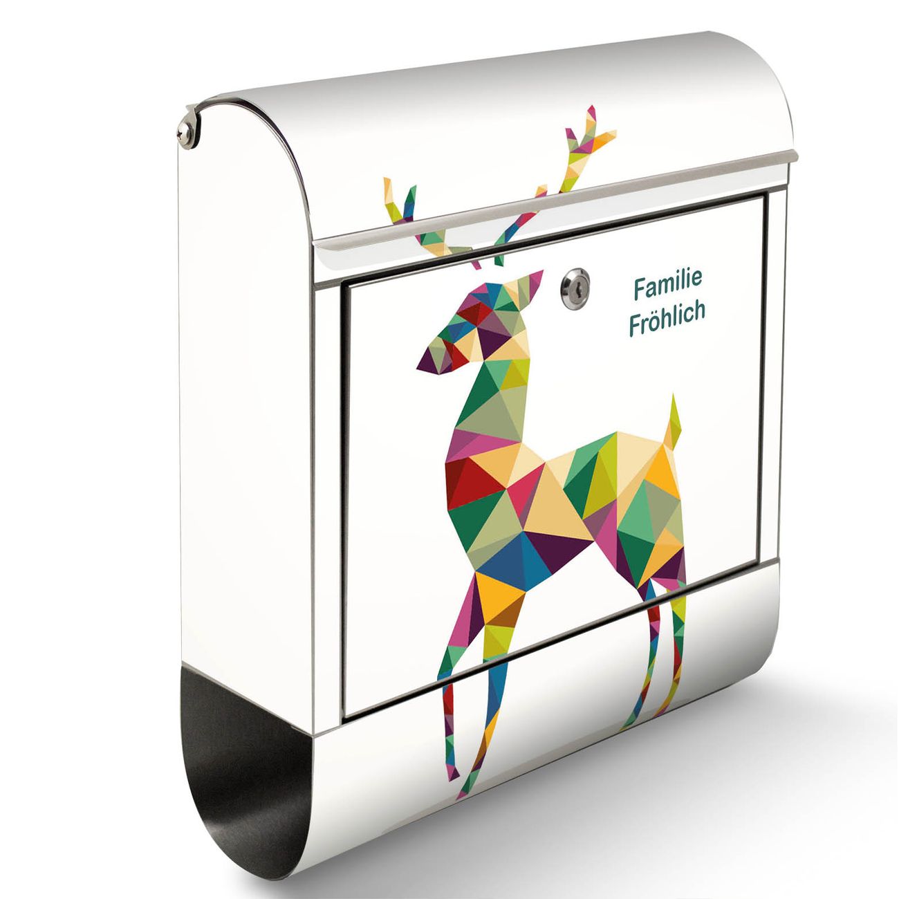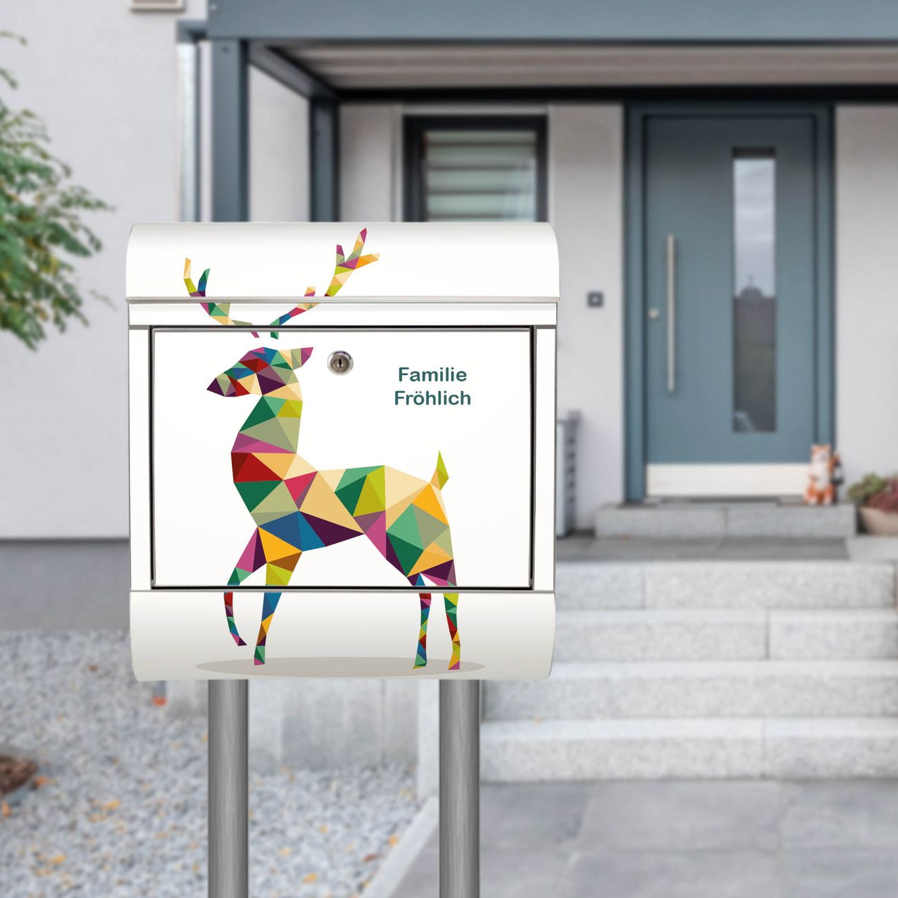 Der Motivstandbriefkasten hat ein sehr ansprechendes und ausgefallenes Design, damit entlocken Sie Ihren Nachbarn und dem Postboten ein Lächeln. Heben Sie Sich ab von der tristen grauen Masse, ohne auf Funktionalität zu verzichten. Der Briefkasten besteht aus hochwertigem 18/0 Edelstahl und die Wetter- und UV-resistenten Folie mit Origami Hirsch Motiv ist zusätzlich mit einem Schutzlaminat überzogen. Der Standbriefkasten wird mit Montagematerial und zwei Schlüsseln geliefert.