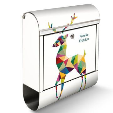 Der banjado Edelstahl Standbriefkasten mit Motiv Origami Hirsch und eigenem Wunschtext bietet Ihnen mit seinem Fassungsvermögen genügend Platz auch für große A4 Sendungen. Das integrierte Zeitungsfach eignet sich hervorragend, um unkompliziert die Tageszeitung zu fassen.
