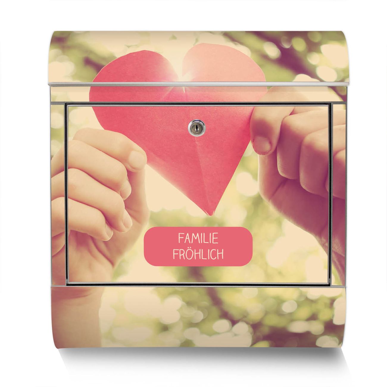 Der Motivstandbriefkasten hat ein sehr ansprechendes und ausgefallenes Design, damit entlocken Sie Ihren Nachbarn und dem Postboten ein Lächeln. Heben Sie Sich ab von der tristen grauen Masse, ohne auf Funktionalität zu verzichten. Der Briefkasten besteht aus hochwertigem 18/0 Edelstahl und die Wetter- und UV-resistenten Folie mit Papierherz Motiv ist zusätzlich mit einem Schutzlaminat überzogen. Der Standbriefkasten wird mit Montagematerial und zwei Schlüsseln geliefert.