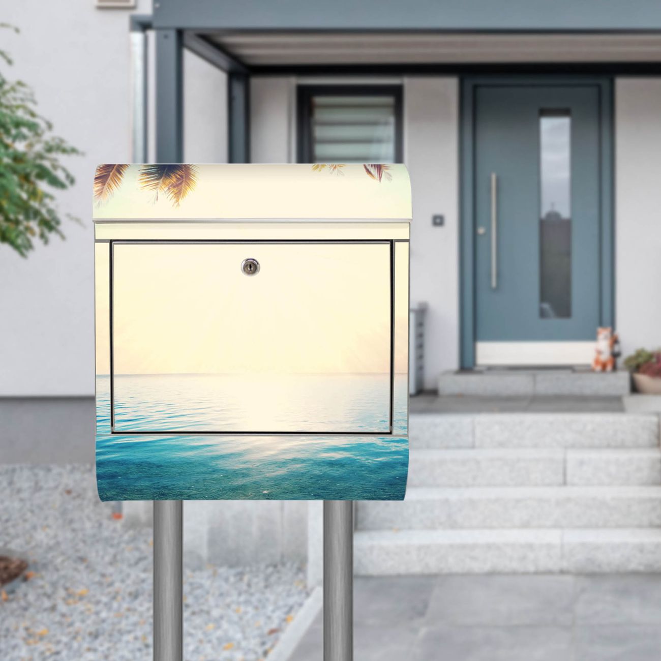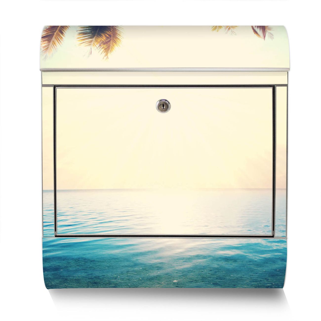 Der Motivstandbriefkasten hat ein sehr ansprechendes und ausgefallenes Design, damit entlocken Sie Ihren Nachbarn und dem Postboten ein Lächeln. Heben Sie Sich ab von der tristen grauen Masse, ohne auf Funktionalität zu verzichten. Der Briefkasten besteht aus hochwertigem 18/0 Edelstahl und die Wetter- und UV-resistenten Folie mit Paradis Motiv ist zusätzlich mit einem Schutzlaminat überzogen. Der Standbriefkasten wird mit Montagematerial und zwei Schlüsseln geliefert.