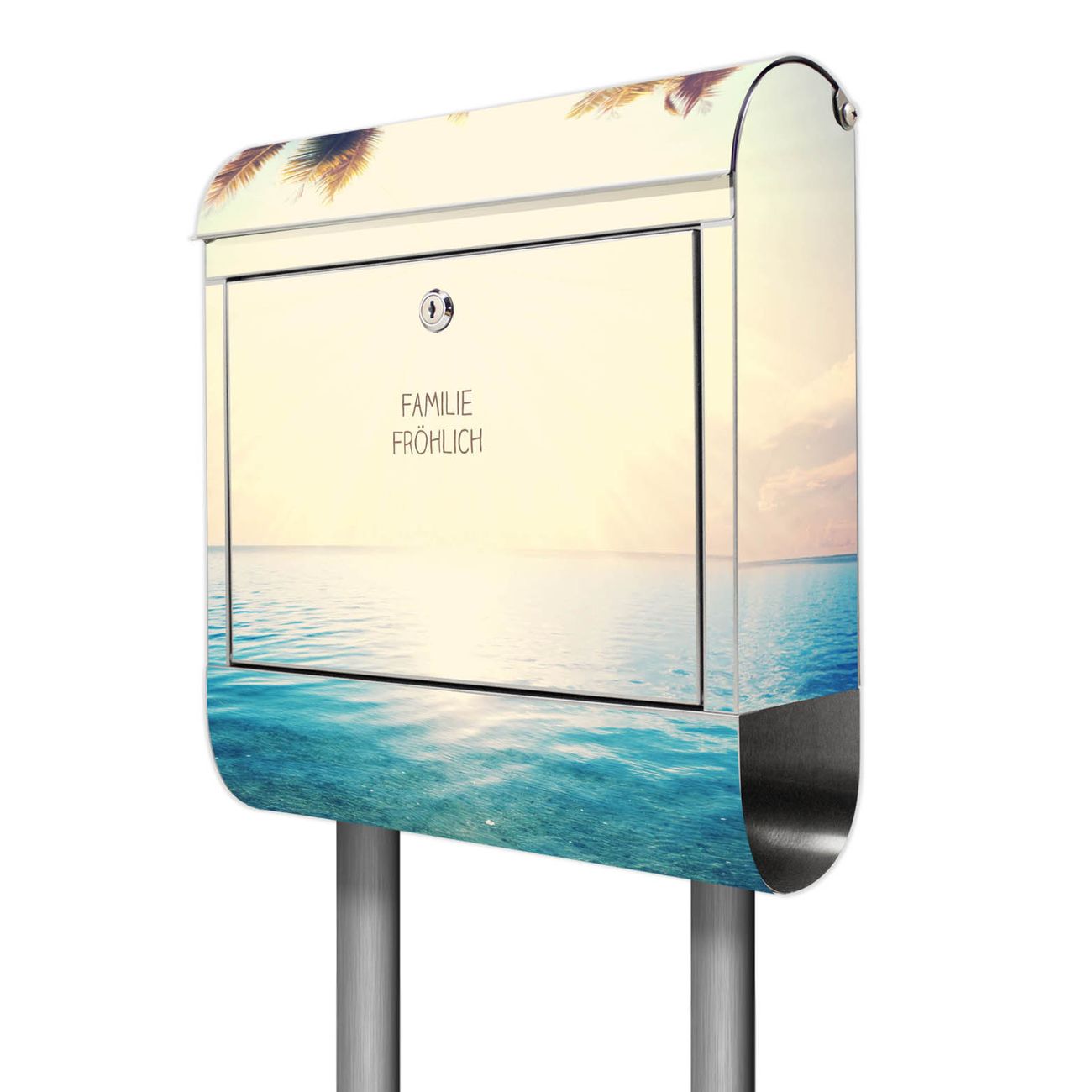 Der Motivstandbriefkasten hat ein sehr ansprechendes und ausgefallenes Design, damit entlocken Sie Ihren Nachbarn und dem Postboten ein Lächeln. Heben Sie Sich ab von der tristen grauen Masse, ohne auf Funktionalität zu verzichten. Der Briefkasten besteht aus hochwertigem 18/0 Edelstahl und die Wetter- und UV-resistenten Folie mit Paradis Motiv ist zusätzlich mit einem Schutzlaminat überzogen. Der Standbriefkasten wird mit Montagematerial und zwei Schlüsseln geliefert.