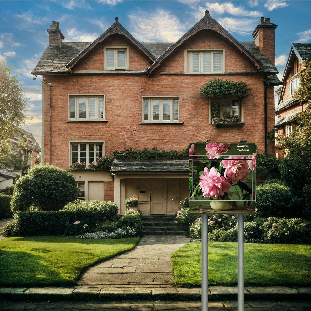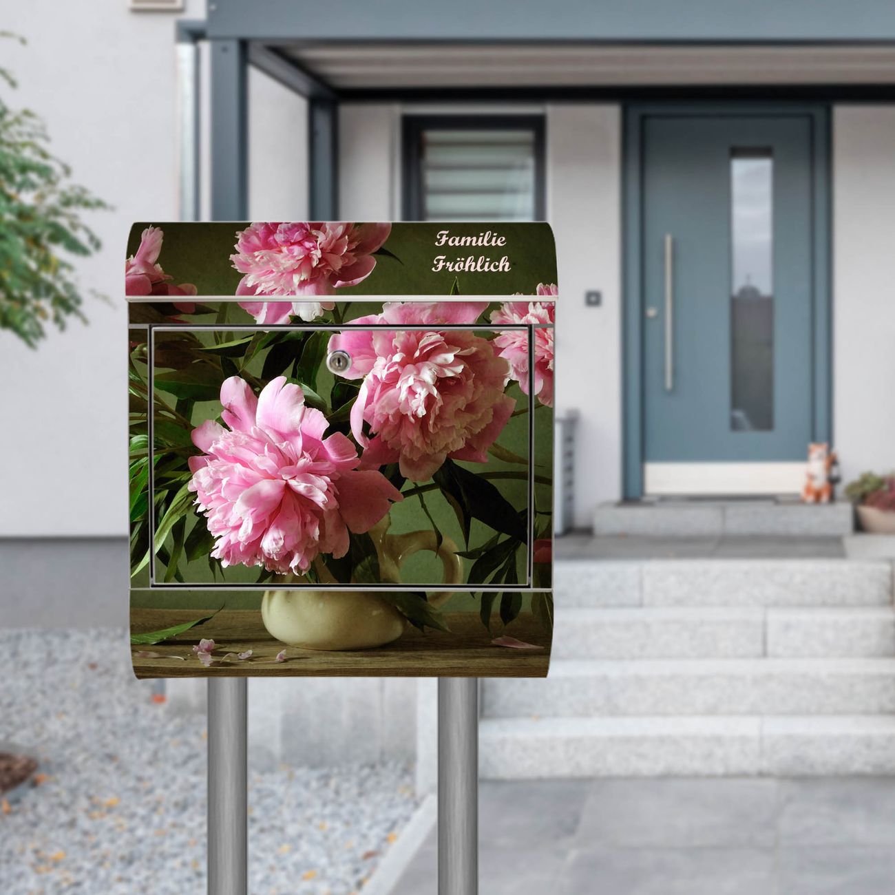 Standbriefkasten Edelstahl Pinke Pfingstrosen