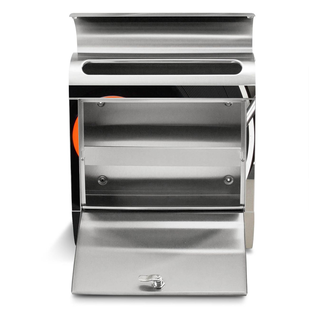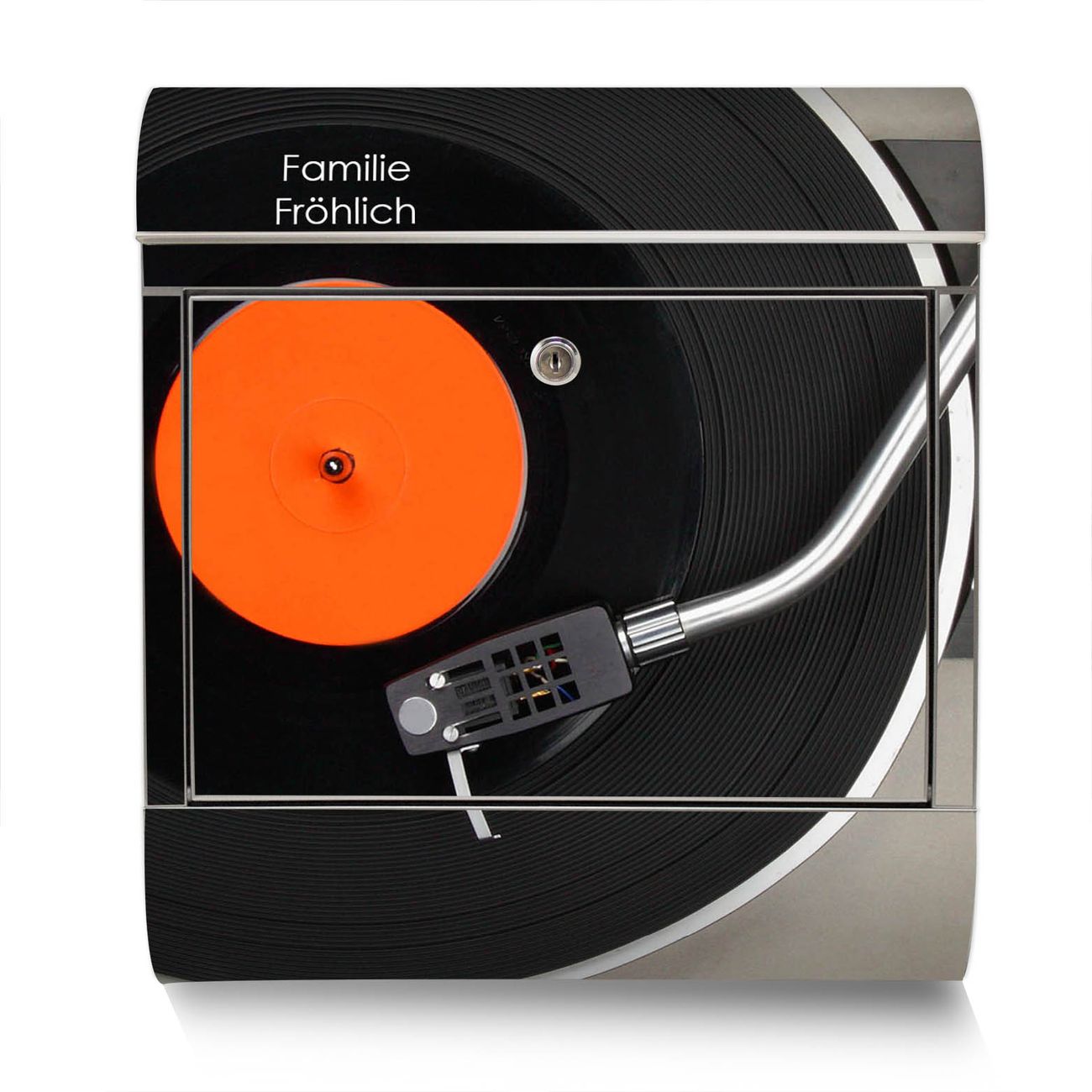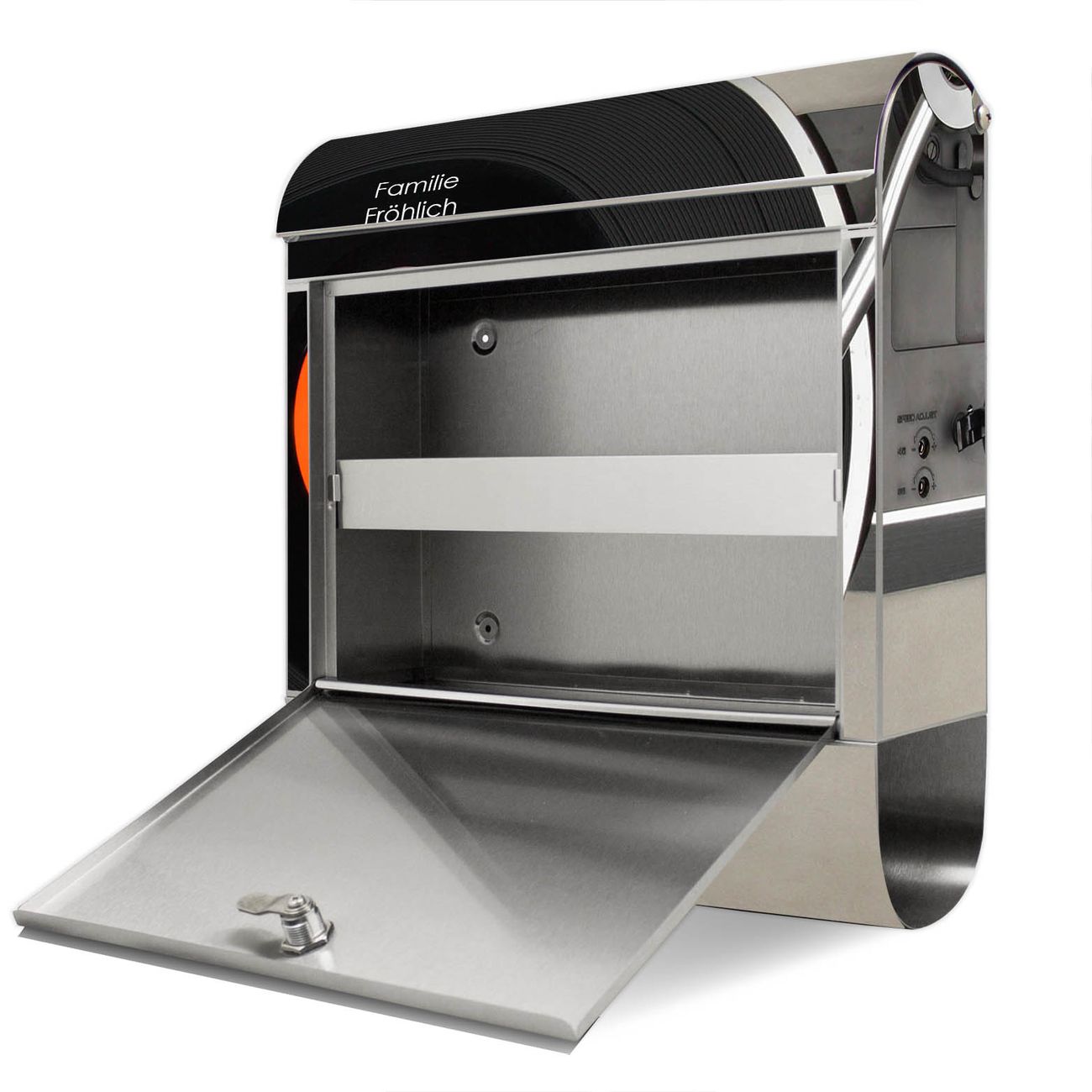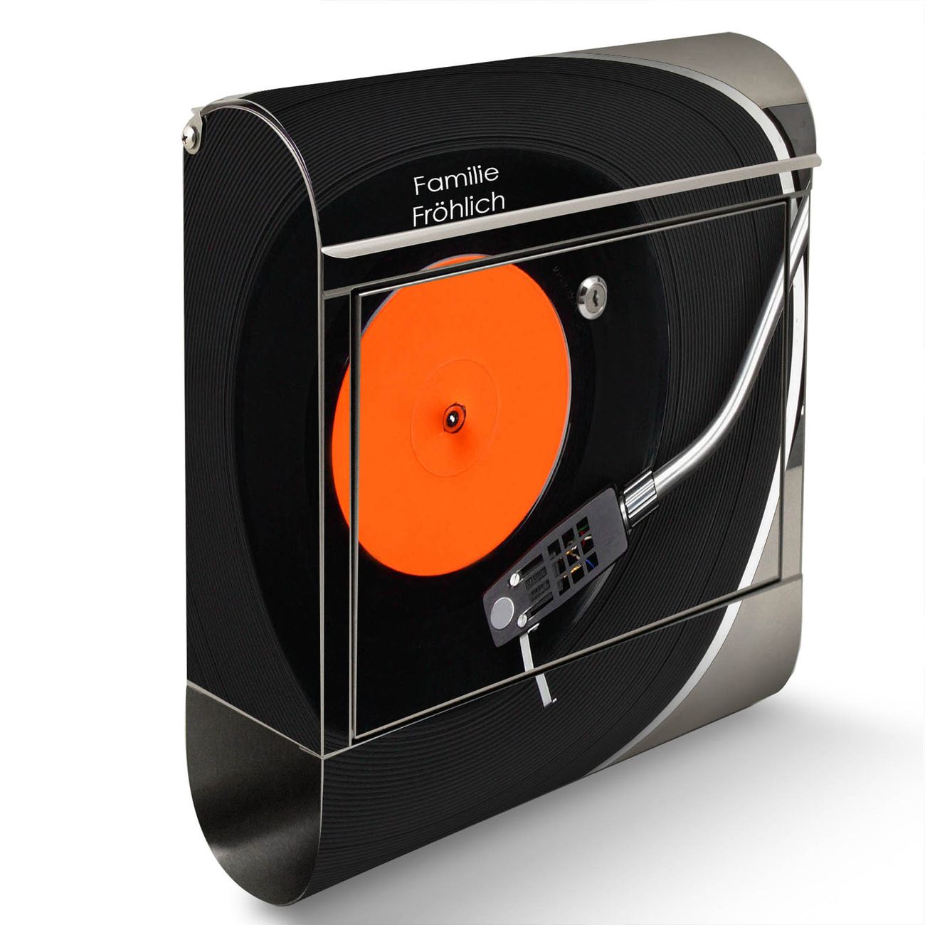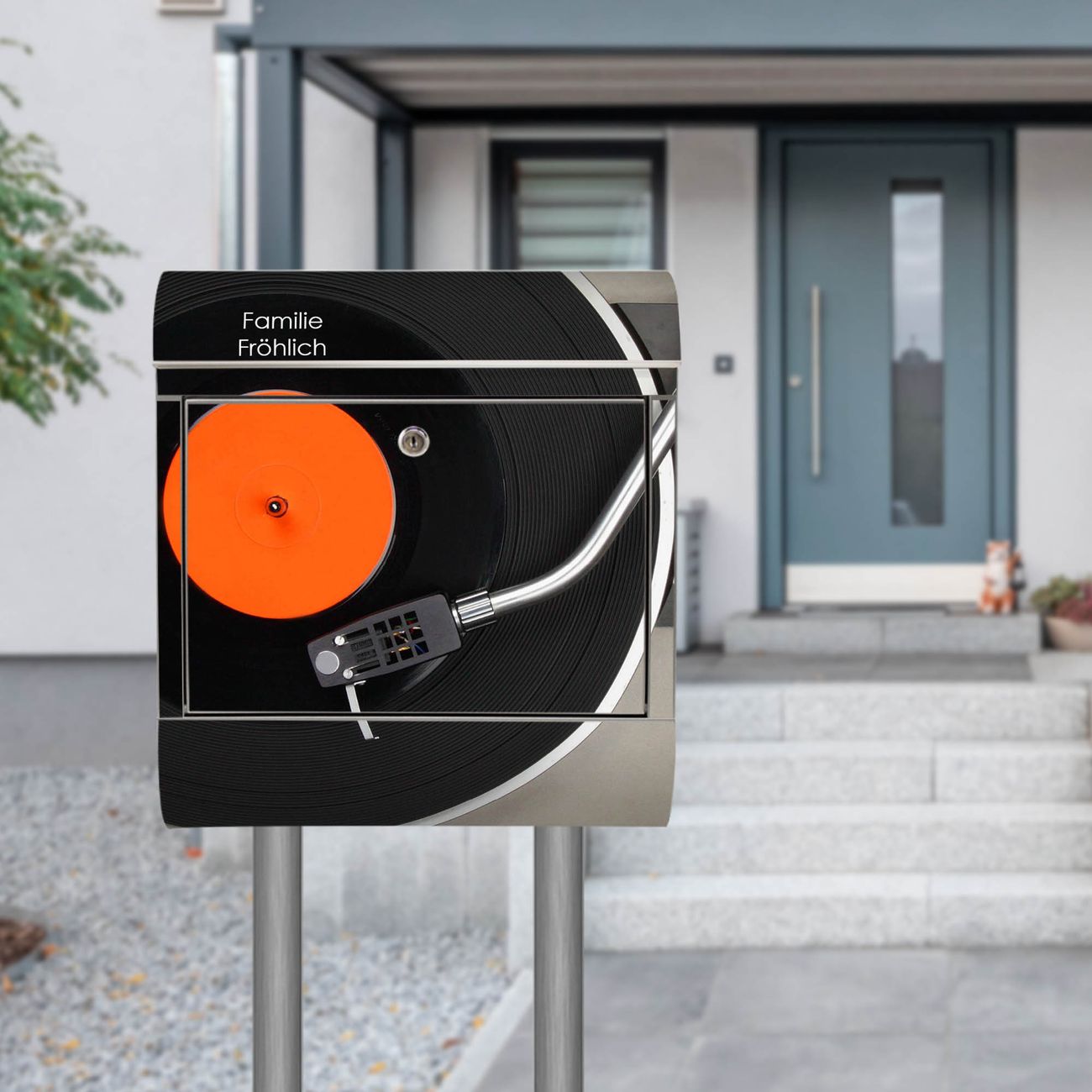 Der banjado Edelstahl Standbriefkasten mit Motiv Plattenspieler und eigenem Wunschtext bietet Ihnen mit seinem Fassungsvermögen genügend Platz auch für große A4 Sendungen. Das integrierte Zeitungsfach eignet sich hervorragend, um unkompliziert die Tageszeitung zu fassen.