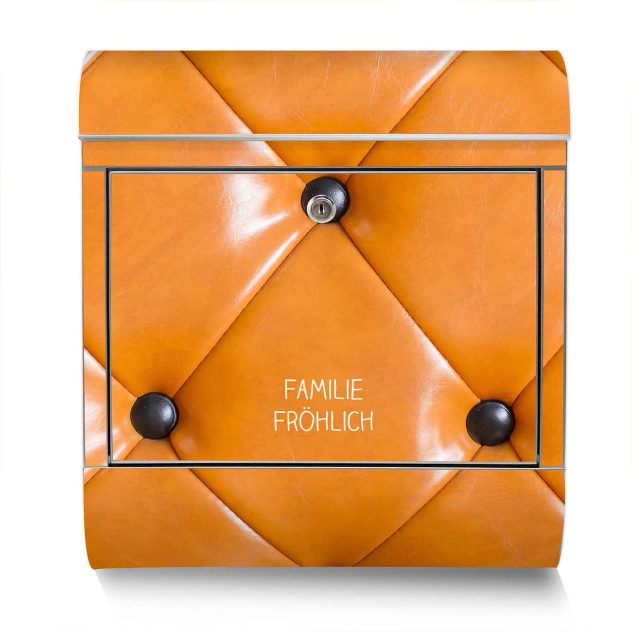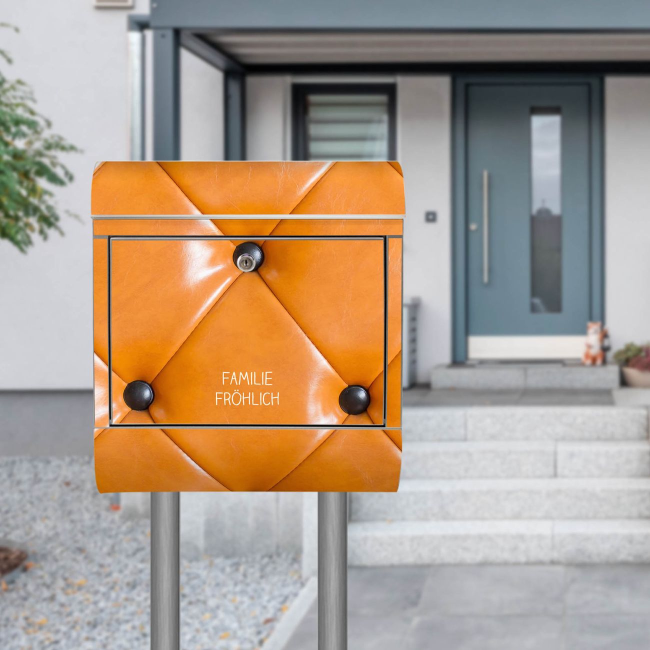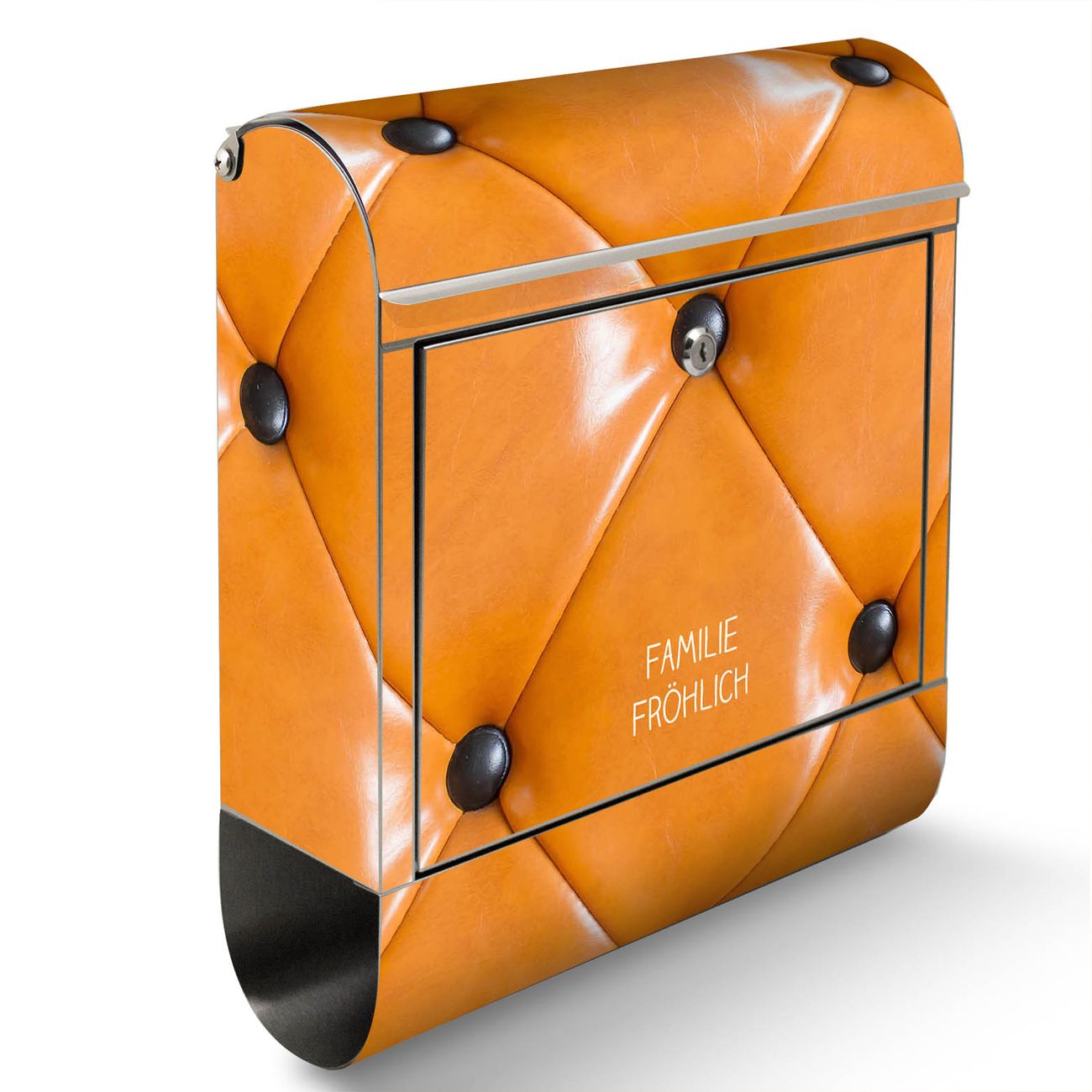 Der banjado Edelstahl Standbriefkasten mit Motiv Polster Orange und eigenem Wunschtext bietet Ihnen mit seinem Fassungsvermögen genügend Platz auch für große A4 Sendungen. Das integrierte Zeitungsfach eignet sich hervorragend, um unkompliziert die Tageszeitung zu fassen.