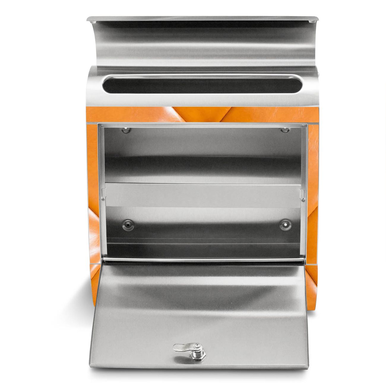 Der Motivstandbriefkasten hat ein sehr ansprechendes und ausgefallenes Design, damit entlocken Sie Ihren Nachbarn und dem Postboten ein Lächeln. Heben Sie Sich ab von der tristen grauen Masse, ohne auf Funktionalität zu verzichten. Der Briefkasten besteht aus hochwertigem 18/0 Edelstahl und die Wetter- und UV-resistenten Folie mit Polster Orange Motiv ist zusätzlich mit einem Schutzlaminat überzogen. Der Standbriefkasten wird mit Montagematerial und zwei Schlüsseln geliefert.
